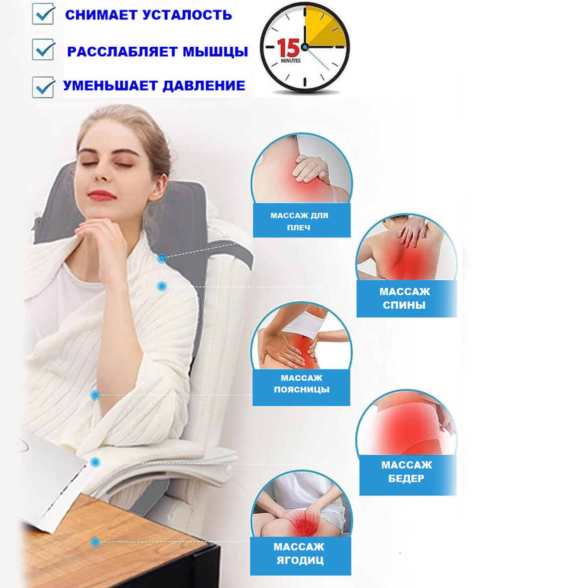 Массажная накидка, с подогревом, массажное кресло, 5 режимов массажа, таймер, для дома, офиса и автомобиля интересное:
