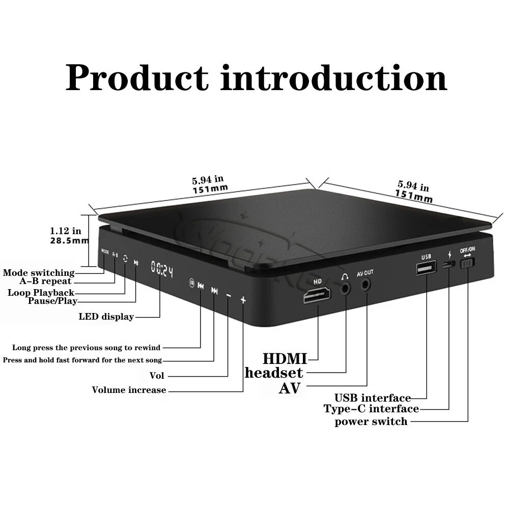 DVD-плеер Woopker, HD-плеер, HDMI, AV, подключение к USB-входу, наушники, выход, сенсорный экран, HD 1080P, Type-C, 5 В/2 А интересное: