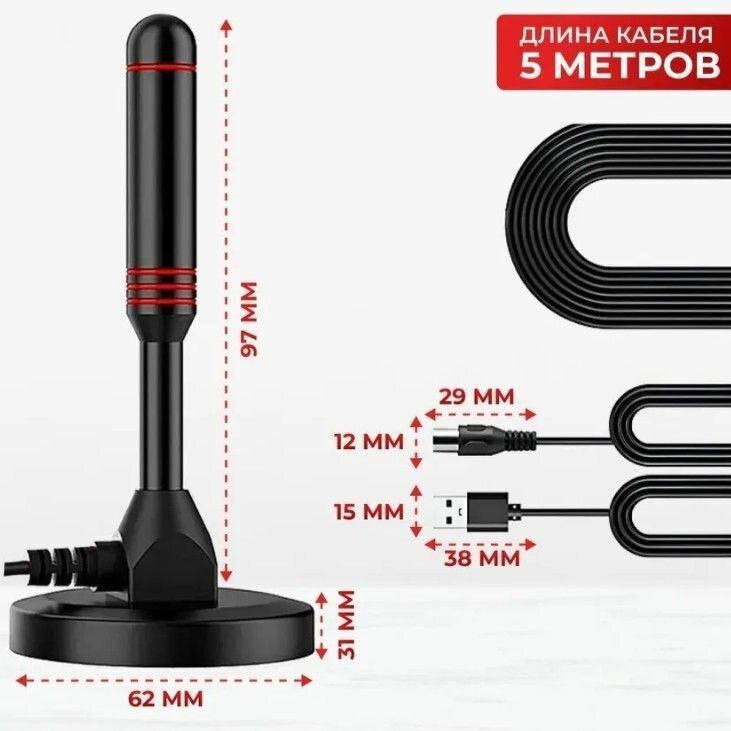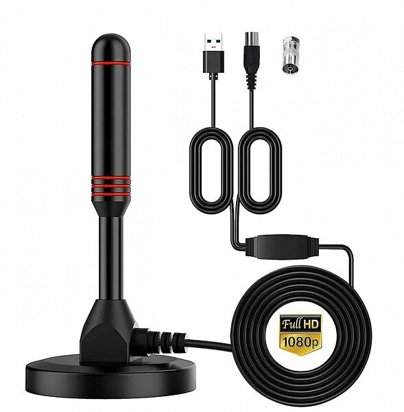 | Дополнительная информация | Рабочие частоты: 174-240 МГц, 470-862 МГц Максимальный коэффициент усиления: 25 dBi (+- 3dBi) Поддержка: 1080p 4K Коаксиальный кабель: длина 5 м Тип разъема: F с ТВ-адаптером Питание: USB 5 В Всенаправленная антенна |