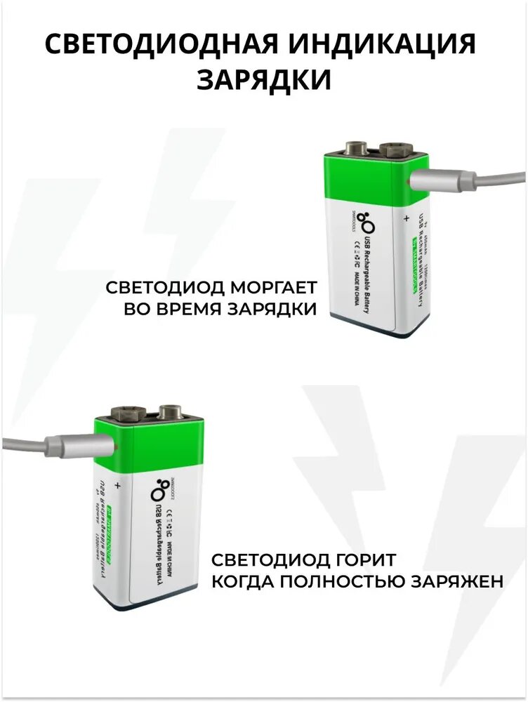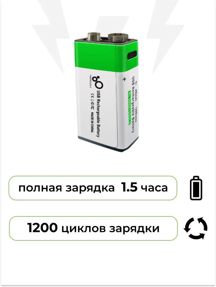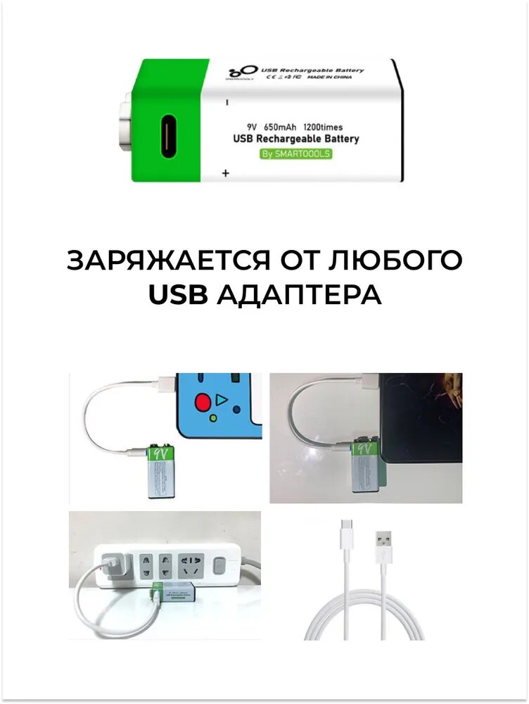 СохранитьАккумуляторная перезаряжаемая батарея Li-ion 9V 650 mAh (1шт) с USB проводом интересное: