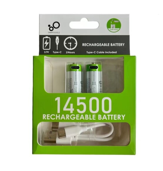 Купить Аккумуляторные батарейки тип 14500 3.7V, 700 mAh с USB type-C кабелем, 2 штуки.