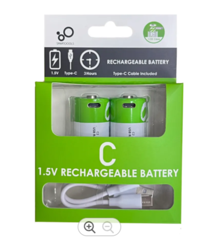 Купить Аккумуляторные батарейки тип С 1,5 V 5000 mWh с USB type-C зарядным кабелем, 2 штуки.