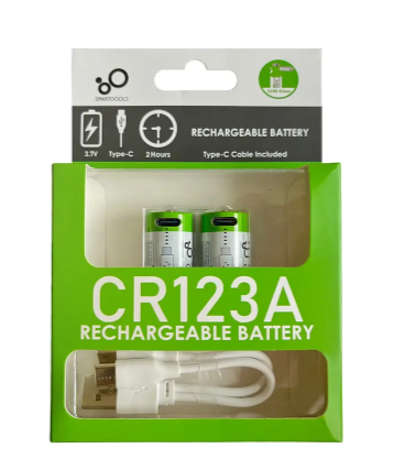 Купить Аккумуляторные батарейки тип CR123A/16340 3.7V 700 mAh с USB type-C кабелем для зарядки, 2 штуки.