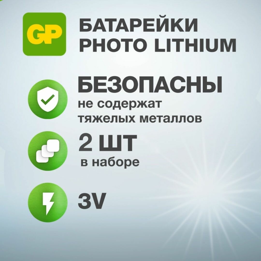 Купить Батарейки литиевые GP CR123AЕ Photo Lithium, 3 В, набор 2 шт