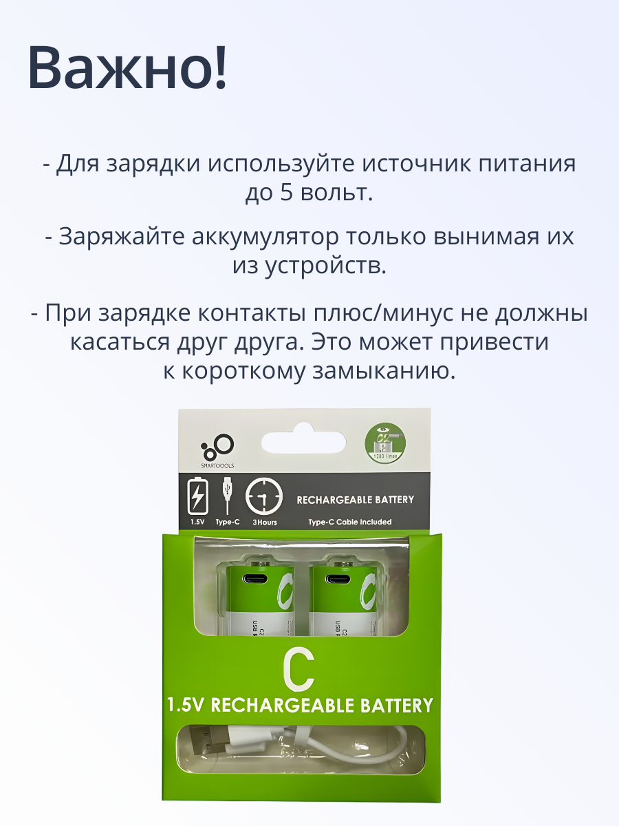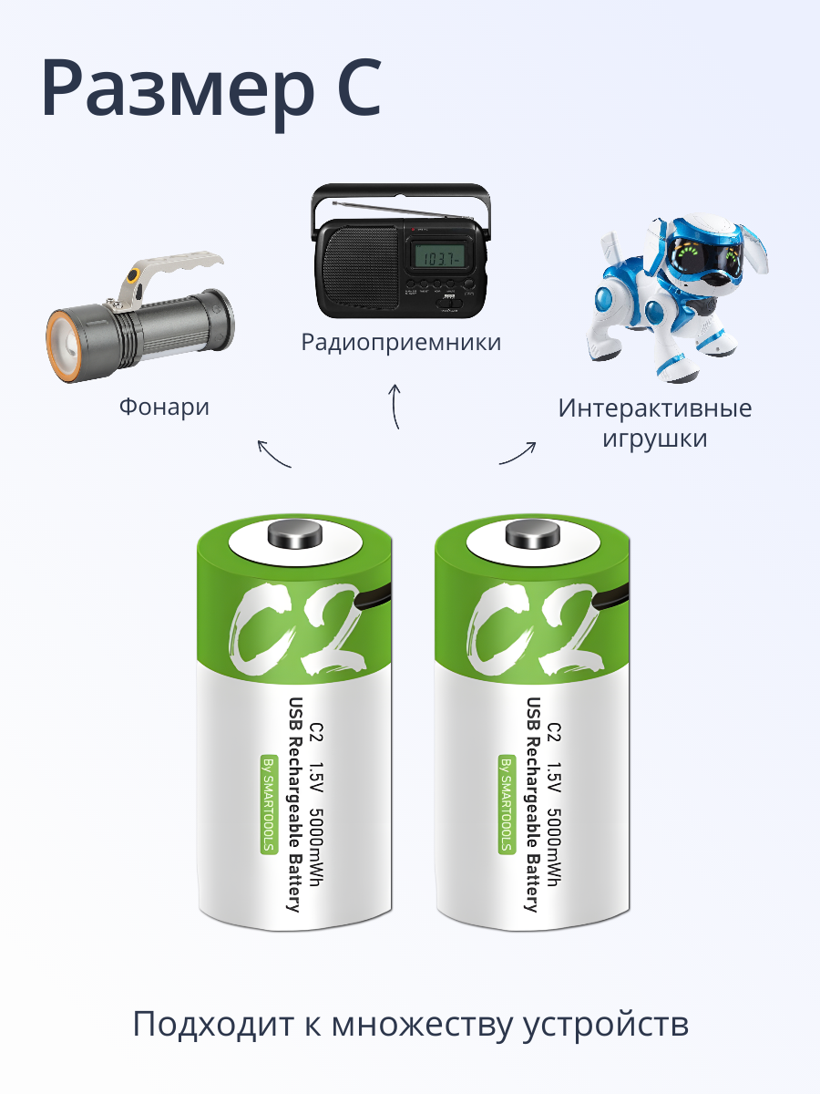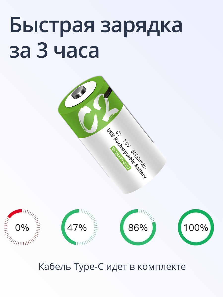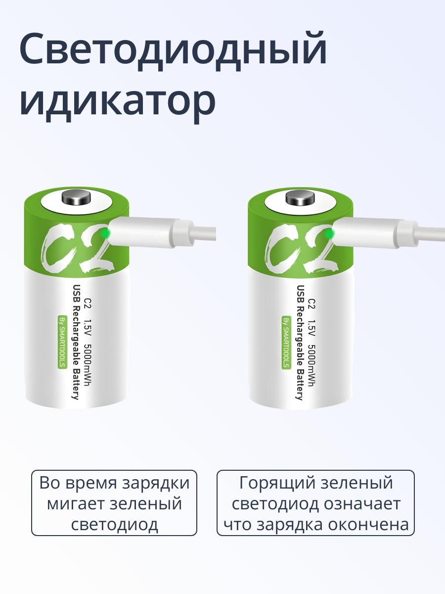 Аккумуляторная батарейка ABC Тип C, 2 шт, емкостью 5000mWh, перезаряжаемая интересное:
