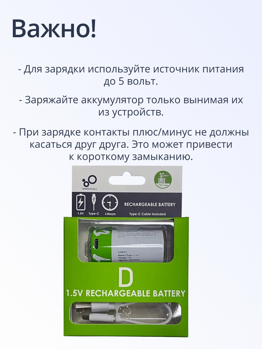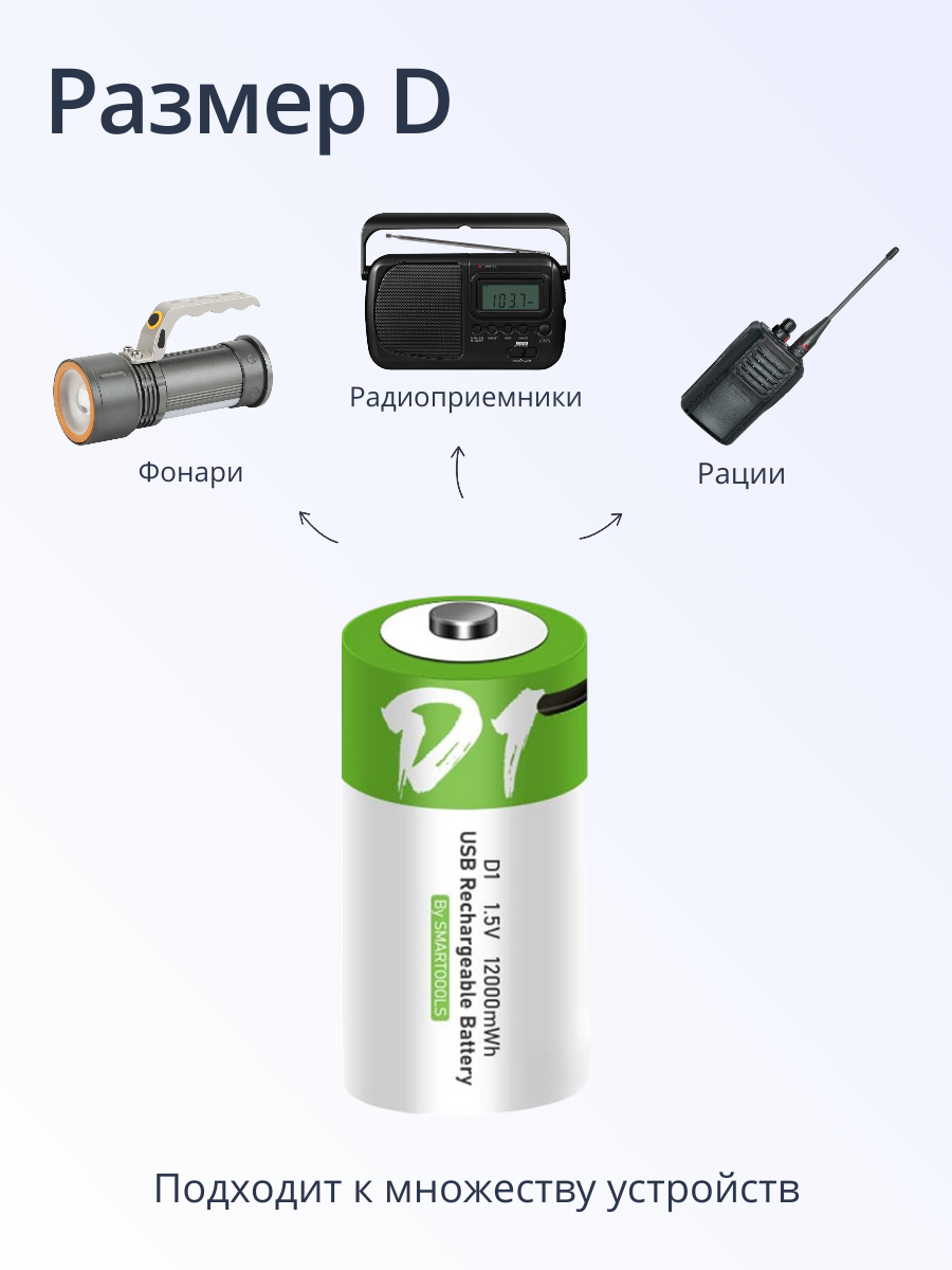 Батарейки перезаряжаемые ABC Тип D / R20, емкость 12000 mWh, 1 шт интересное: