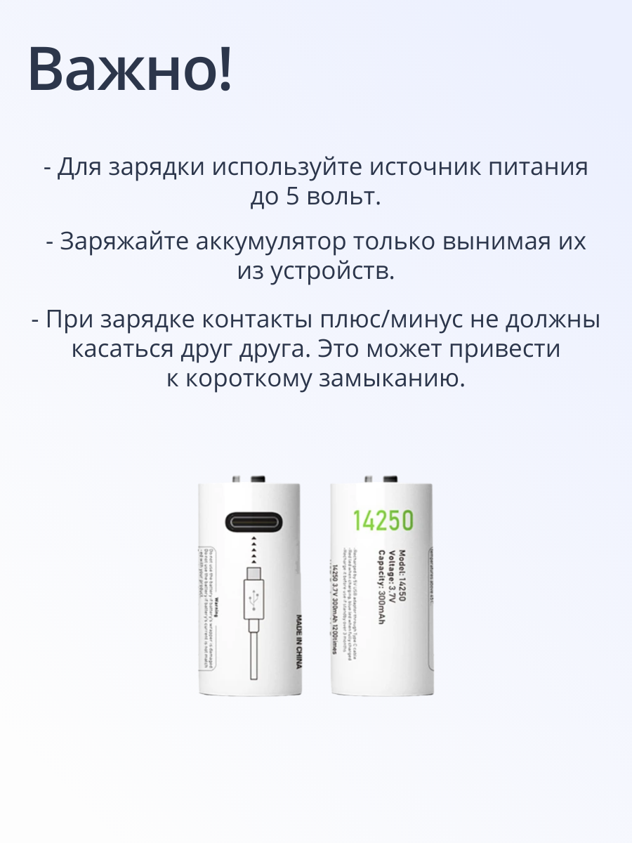 Купить Батарейки перезаряжаемые ABC Тип 14250, емкость 300mAh, 2 шт