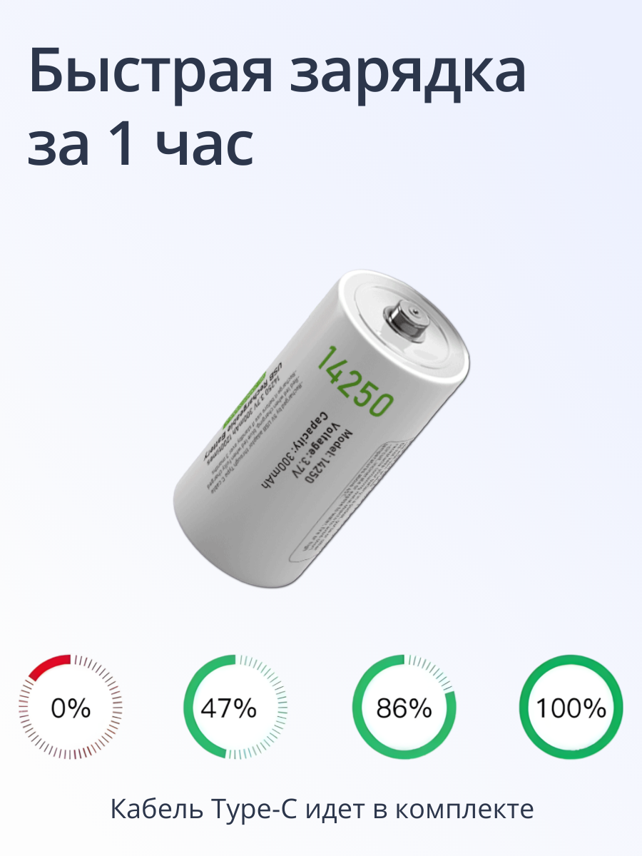 Аккумуляторная батарейка ABC Тип C перезаряжаемая, ёмкостью 5000 mWh, 1 шт