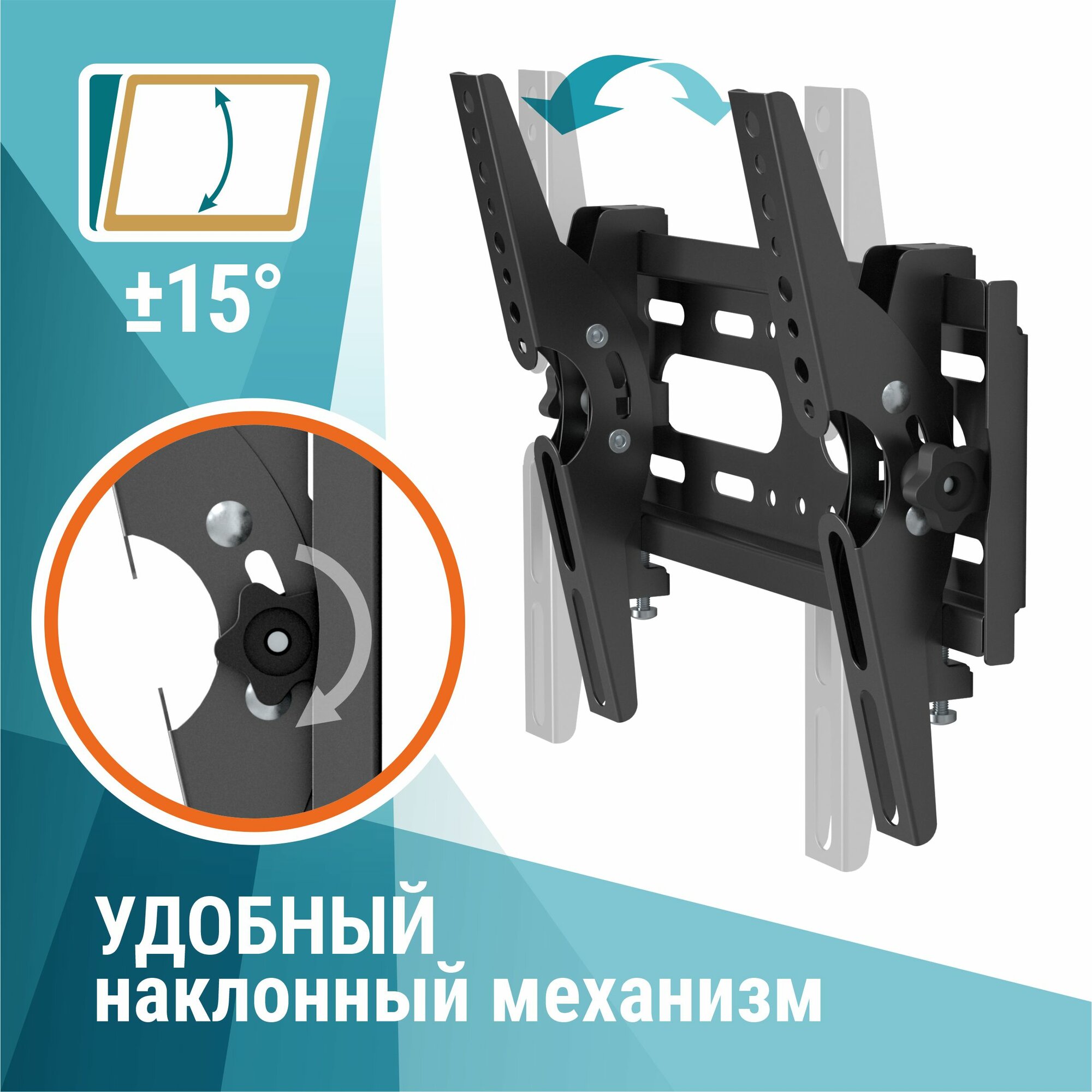 Надежный кронштейн для телевизора настенный, крепление, подвес наклонный для диагонали 19-49" дюймов VESA 200х200 LEONICS (черный настенный tv-mount держатель опора 100х100,200х100,75х75) на стену интересное: