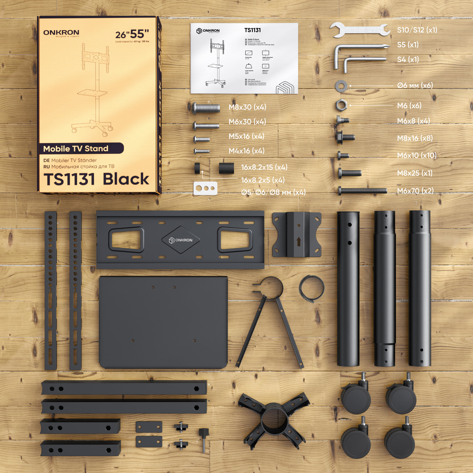 Стойка для телевизора 26"-55" ONKRON TS1131 напольная, подставка под телевизор до 35 кг, чёрная интересное: