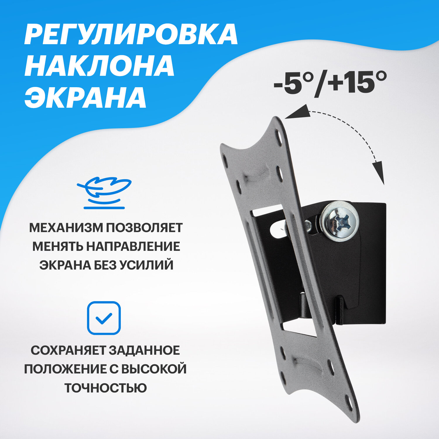 Купить Кронштейн для телевизора настенный наклонный 10-27 дюйма REXANT с фиксатором наклона, крепления на стену в комплекте
