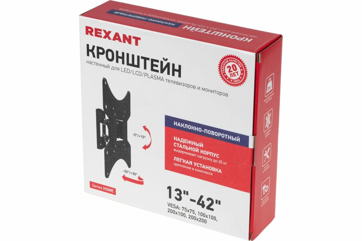Кронштейн для телевизора наклонно-поворотный REXANT Home для 13-42" (38-0061) интересное: