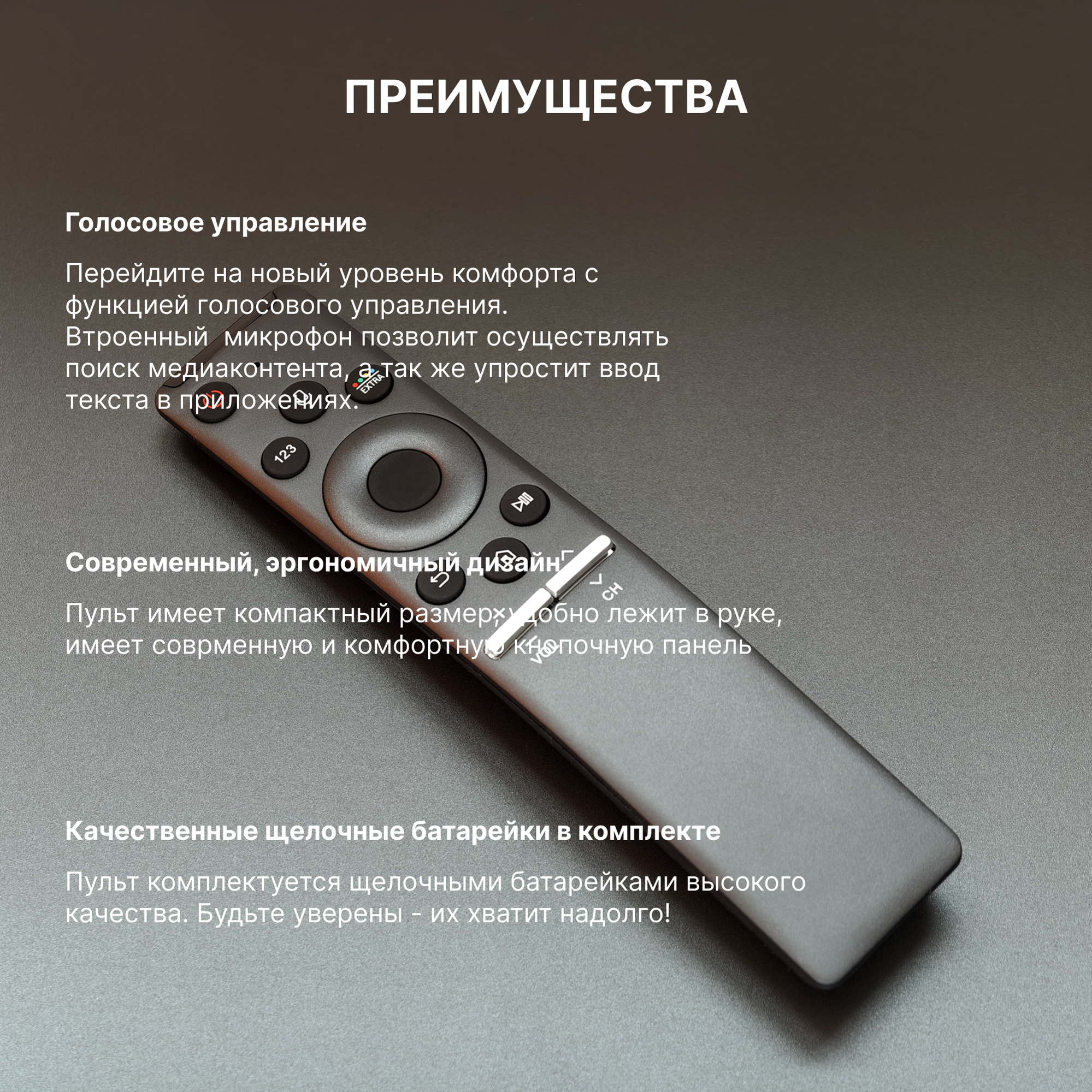 Голосовой пульт BN59-01266A для smart телевизоров Samsung. В комплекте с батарейками интересное: