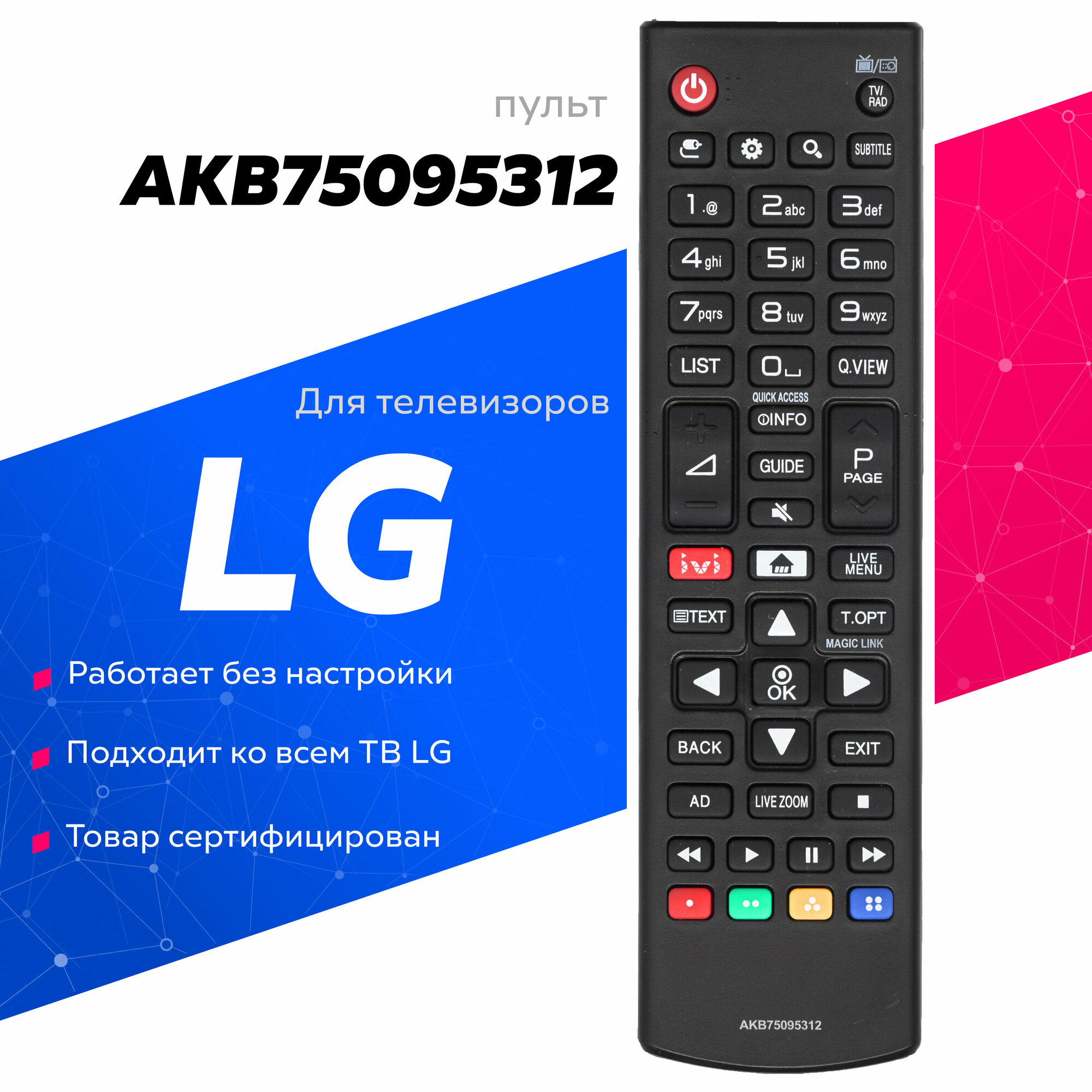 Пульт akb75095312 для LG/ЭЛ-ДЖИ телевизора