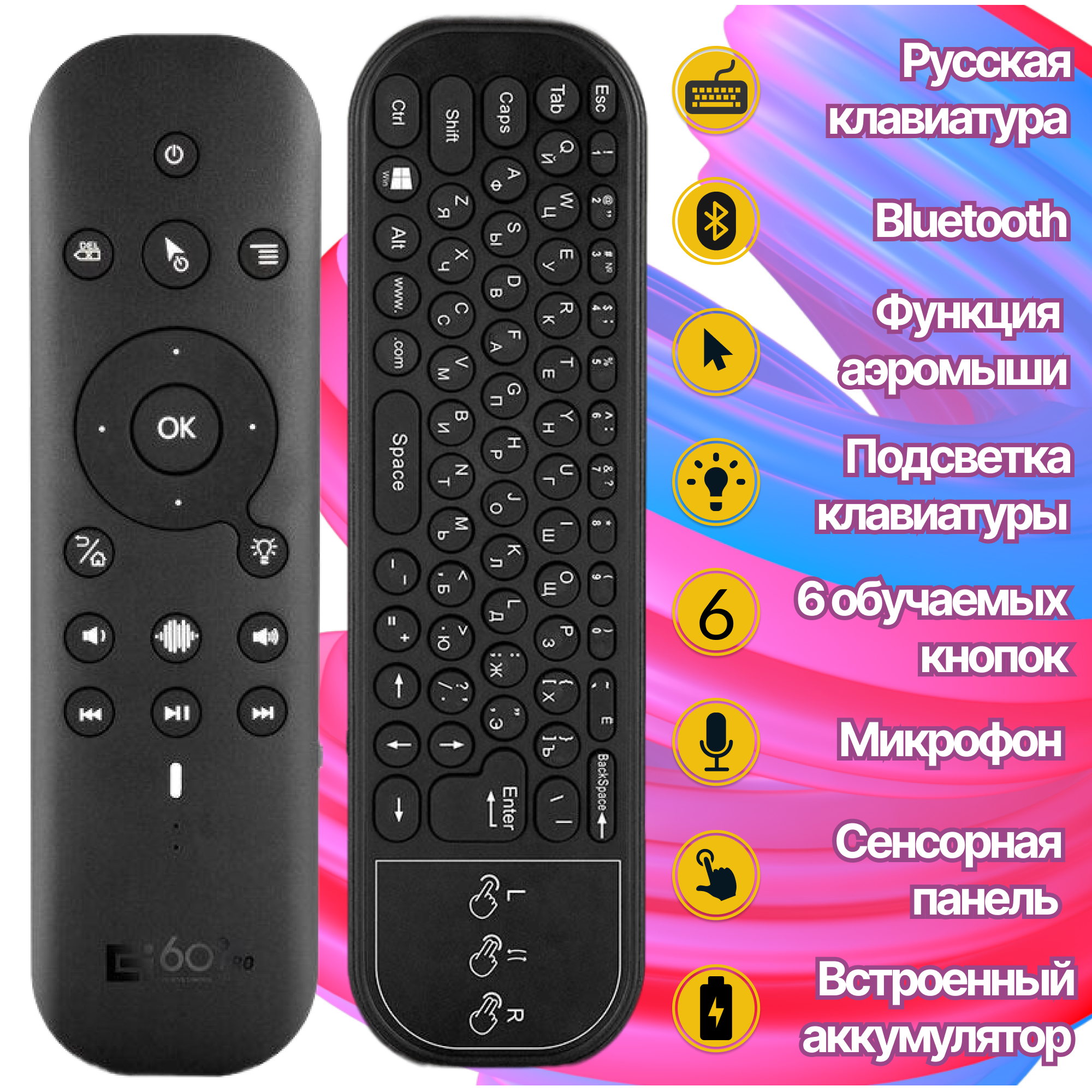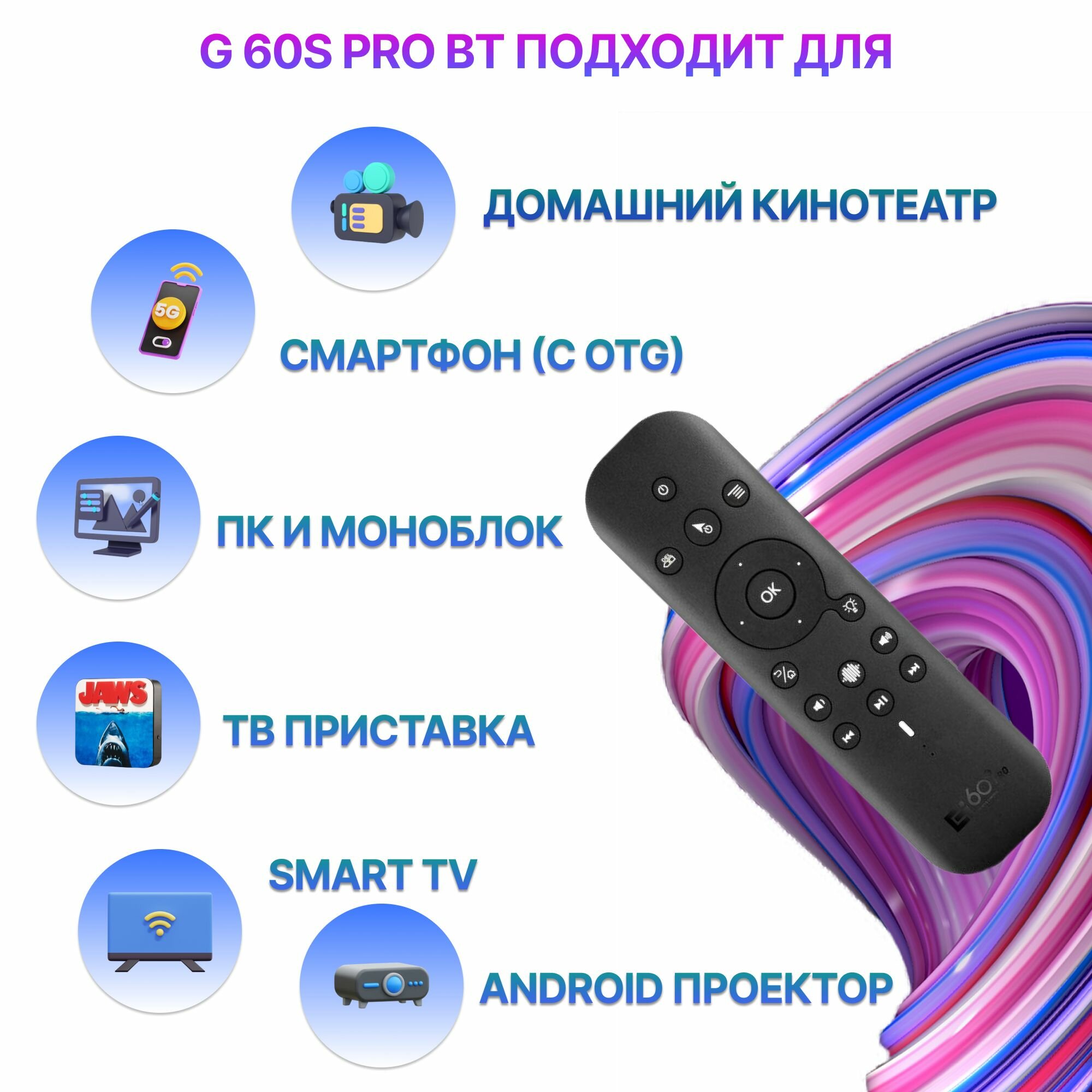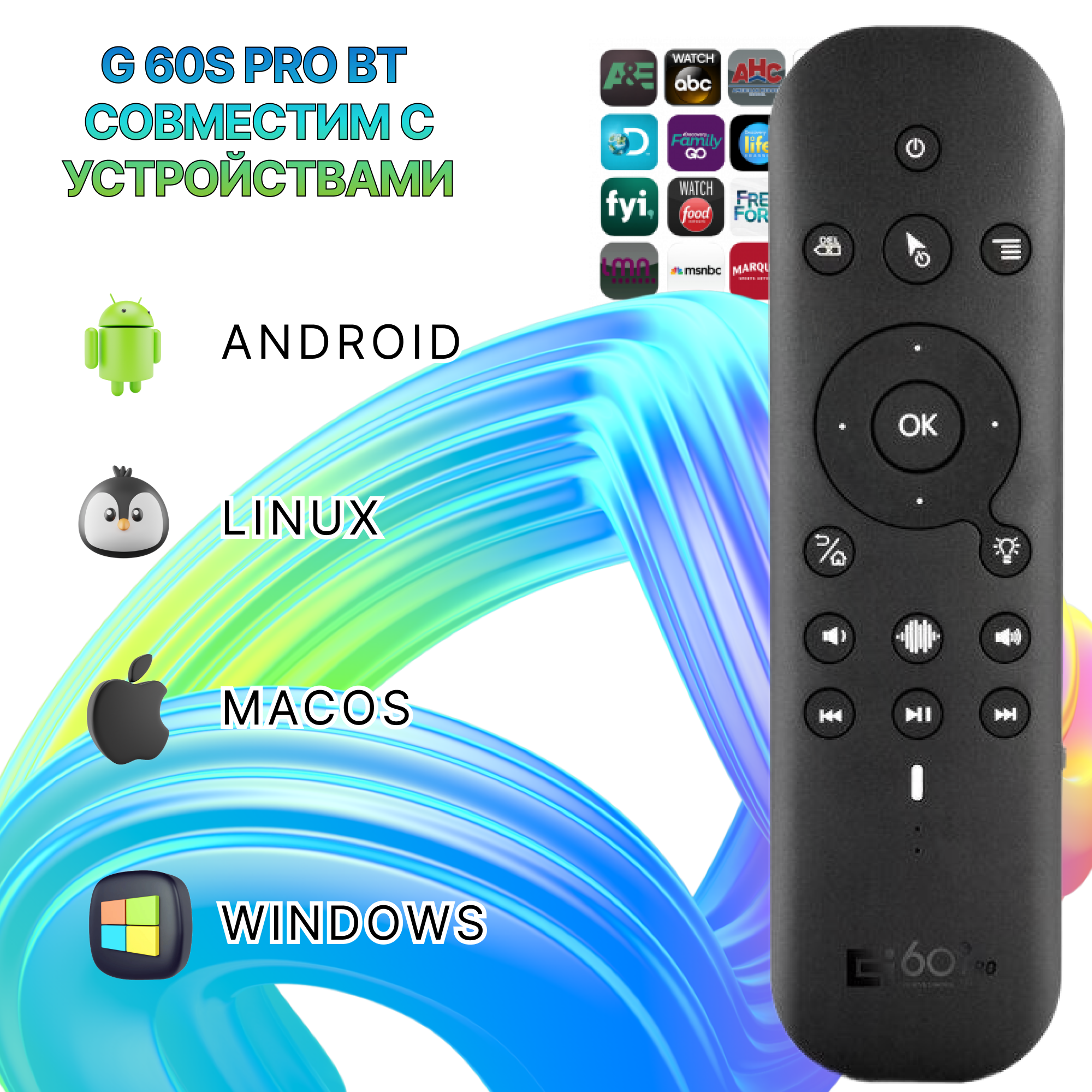 Универсальный пульт дистанционного управления G60S Pro BT 2.4G BT5.0 с аэромышью, кнопками ИК-обучения и подсветкой интересное: