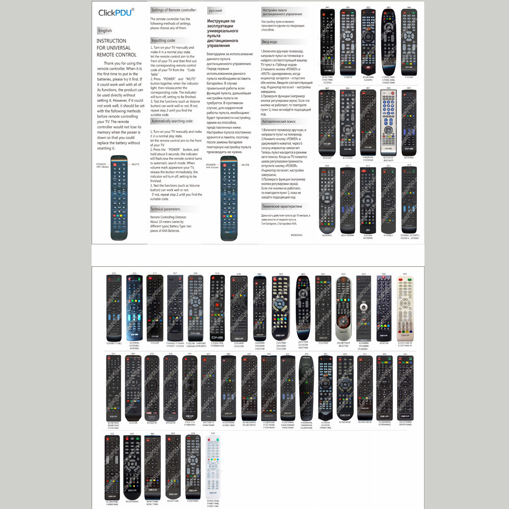 Универсальный пульт ClickPdu RM-L1325 для DEXP/DNS/DOFLER интересное: