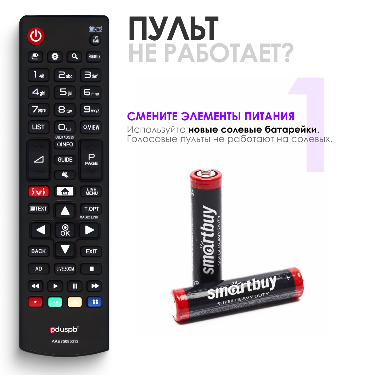 | Дополнительная информация | Используйте новые солевые батарейки. Многие пульты не работают на алкалиновых |