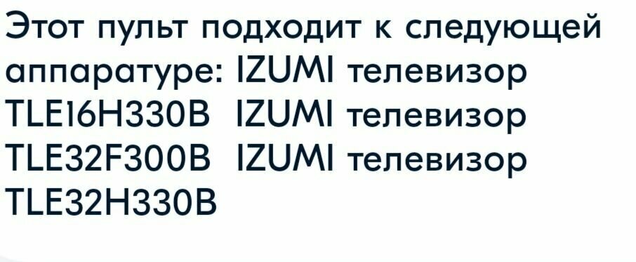 Пульт к Izumi TLE32F300B LCD TV интересное:
