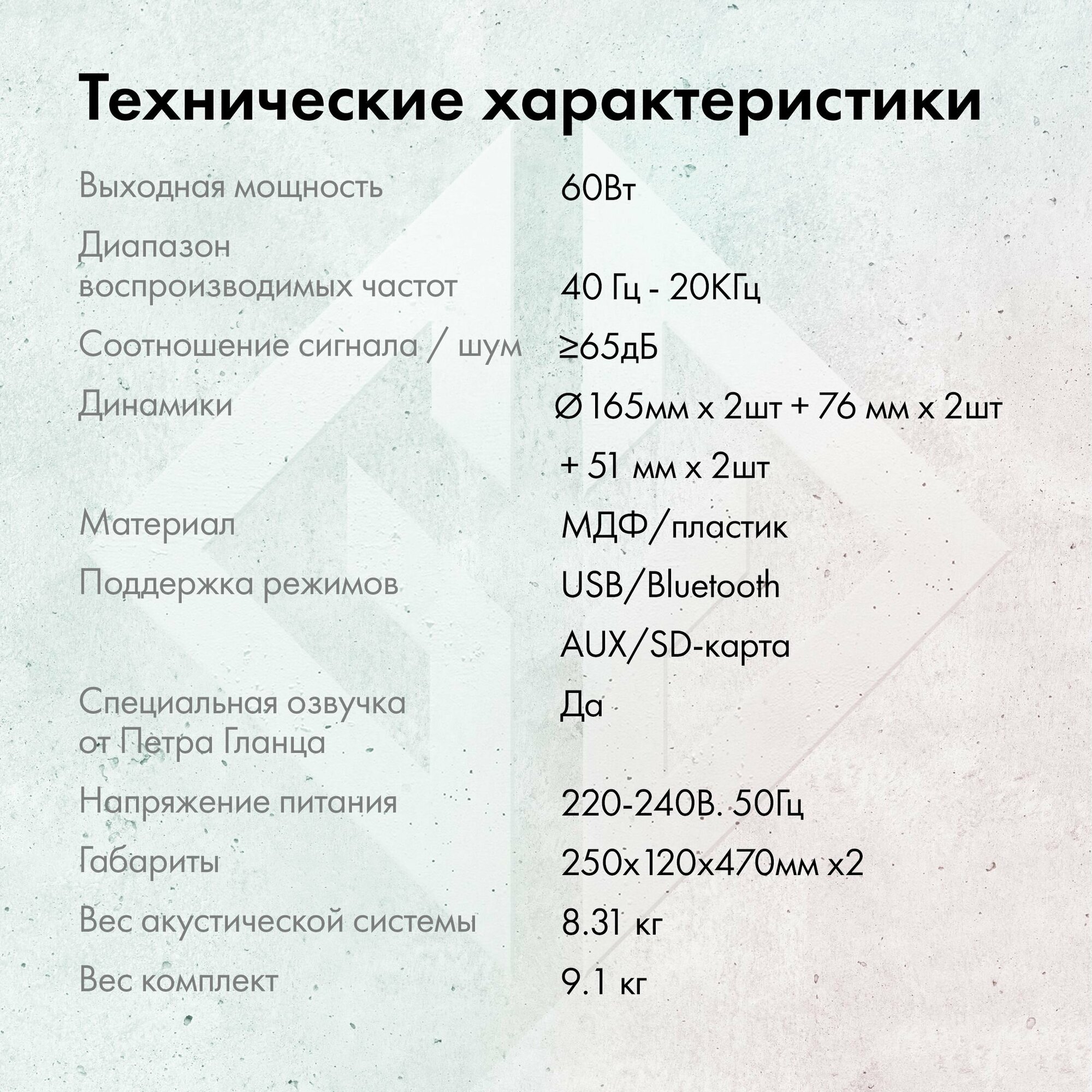 | Максимальная мощность акустической системы | 60 Вт |