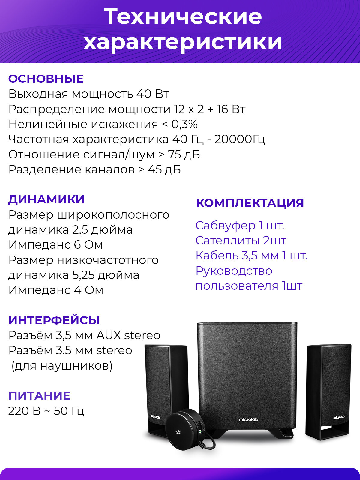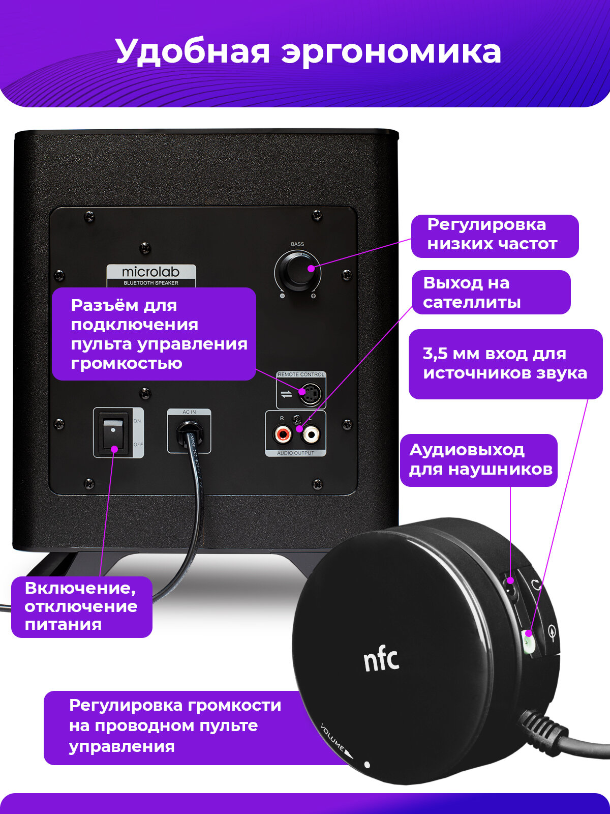 Ниже Вы можете прочитать отзывы на Акустическая система Microlab M-600BT black, ознакомится с подробными характеристиками, посмотреть интересные обзоры и фотографии на Акустическая система Microlab M-600BT black.