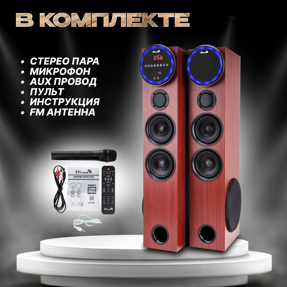 Акустические колонки ELTRONIC Home Sound 30-35 (серебро), 220 В, 6 полос, Bluetooth, FM, 30 Гц - 20 кГц