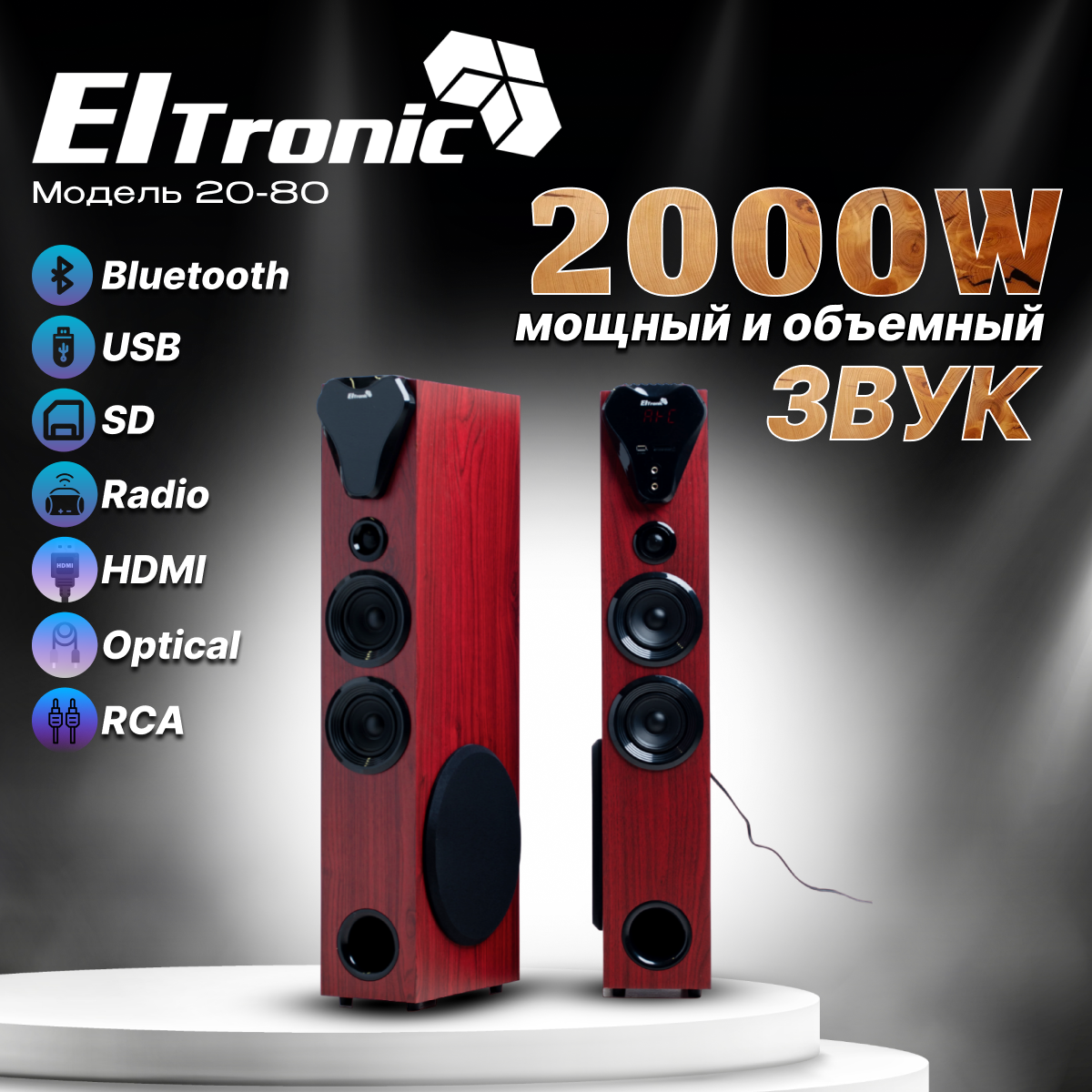 Акустические колонки Eltronic Home Sound 20-80, 200 Вт, Bluetooth, черная