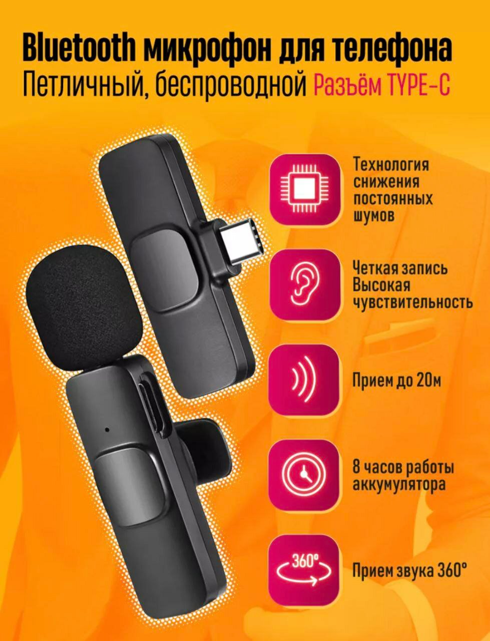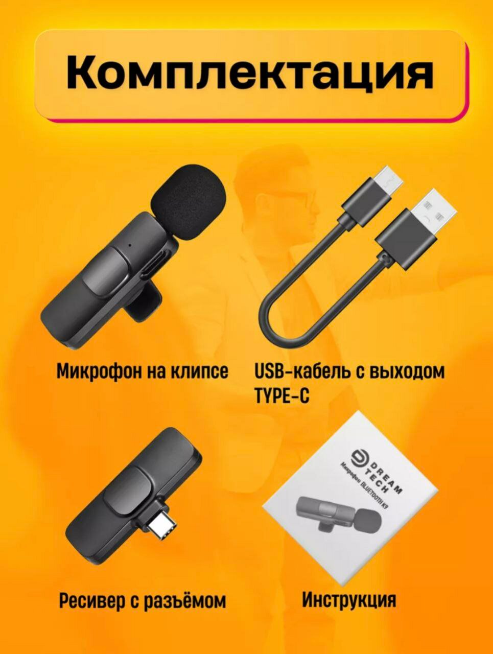 Беспроводной петличный микрофон K9 Type-C для Android, / 1 микрофон интересное: