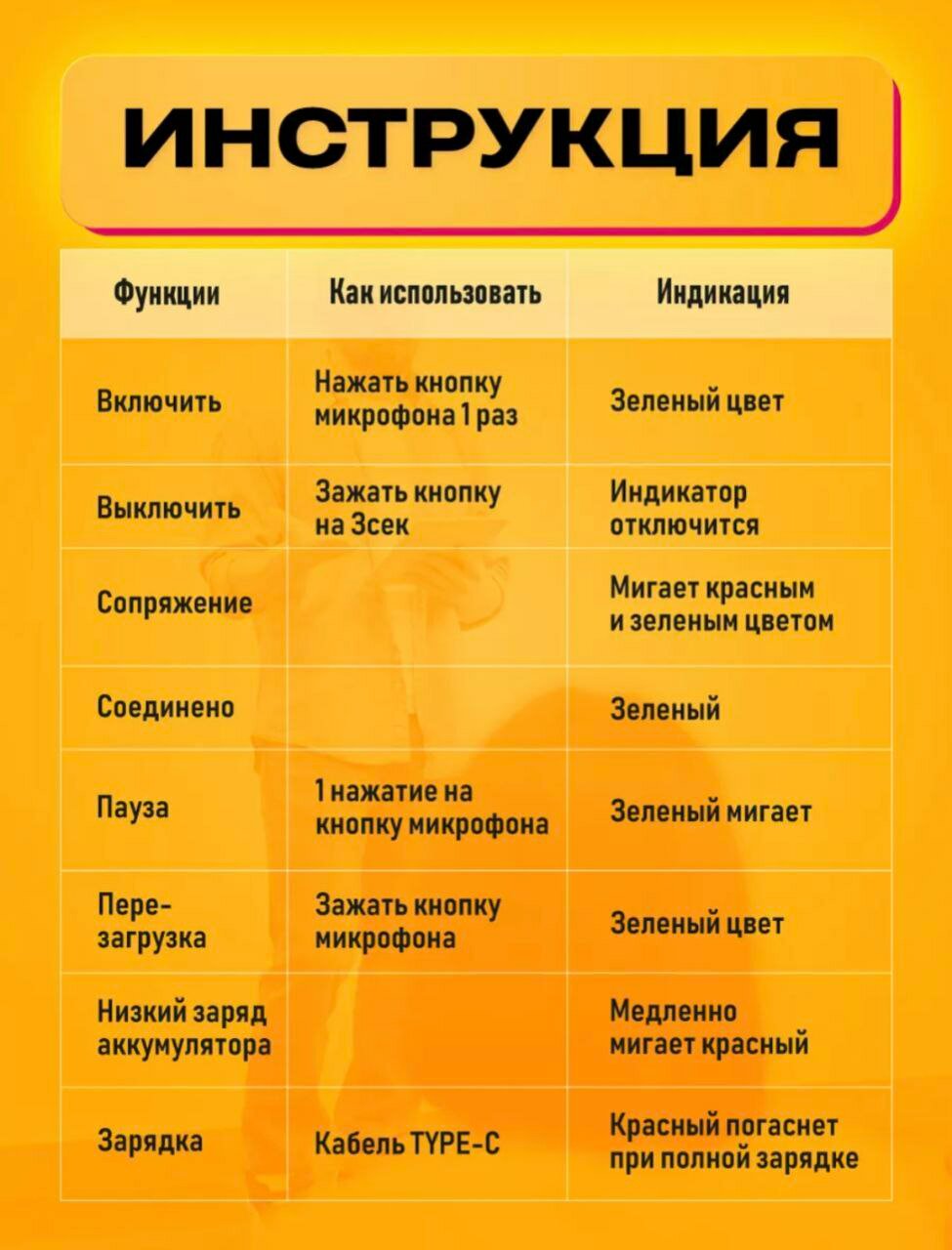 | Особенности | беспроводной микрофон / кнопка отключения микрофона / шумоподавление |