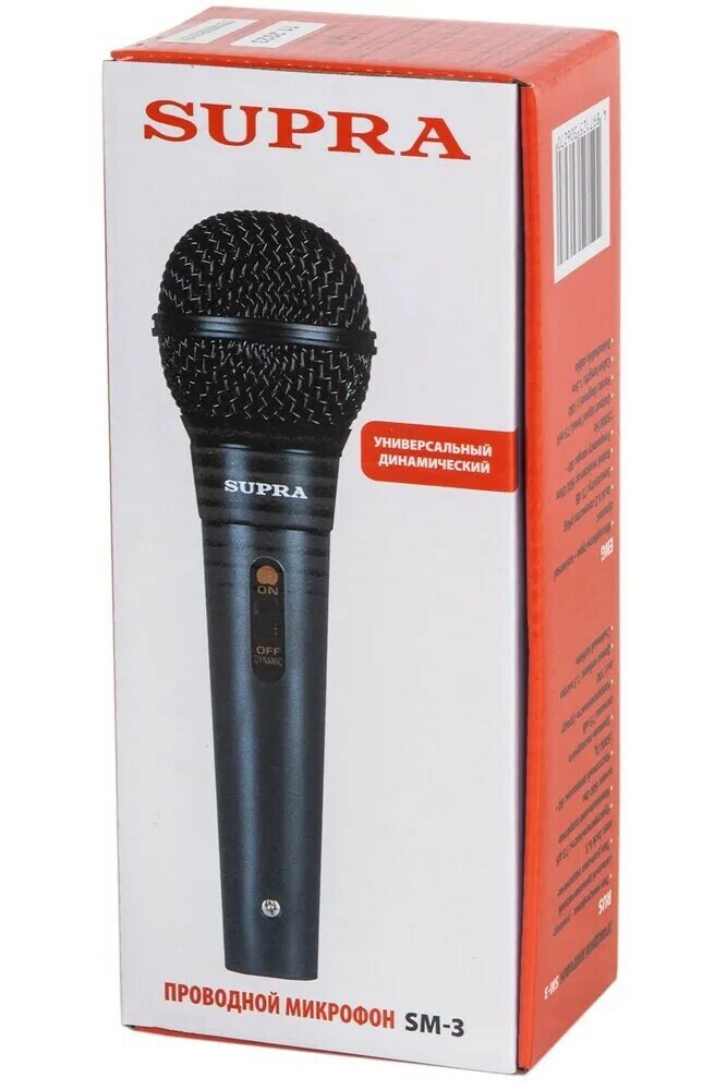Микрофон проводной для вокала SUPRA SM-3, 73 Дб, 1,5 м, динамический, черный