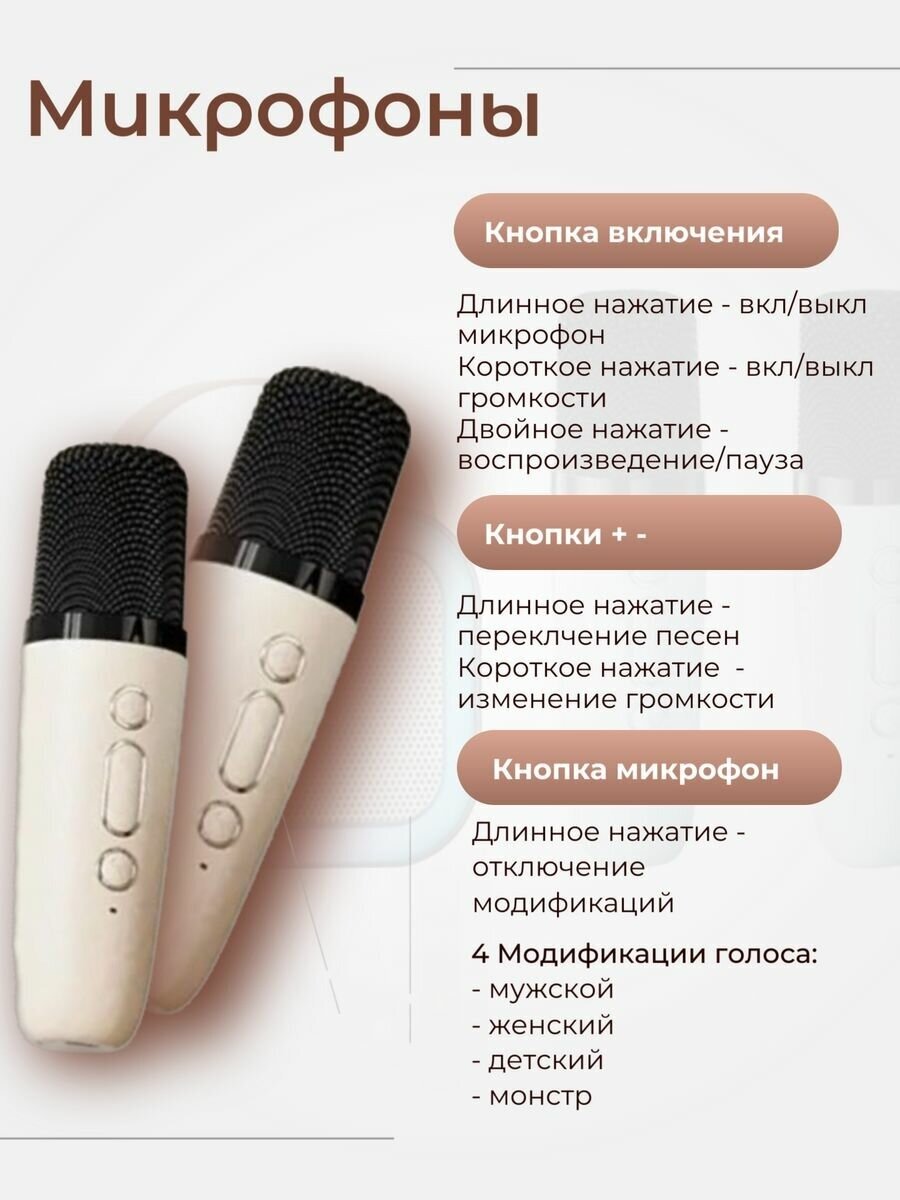 Караоке система с двумя беспроводными микрофонами и колонкой (бежевый) интересное: