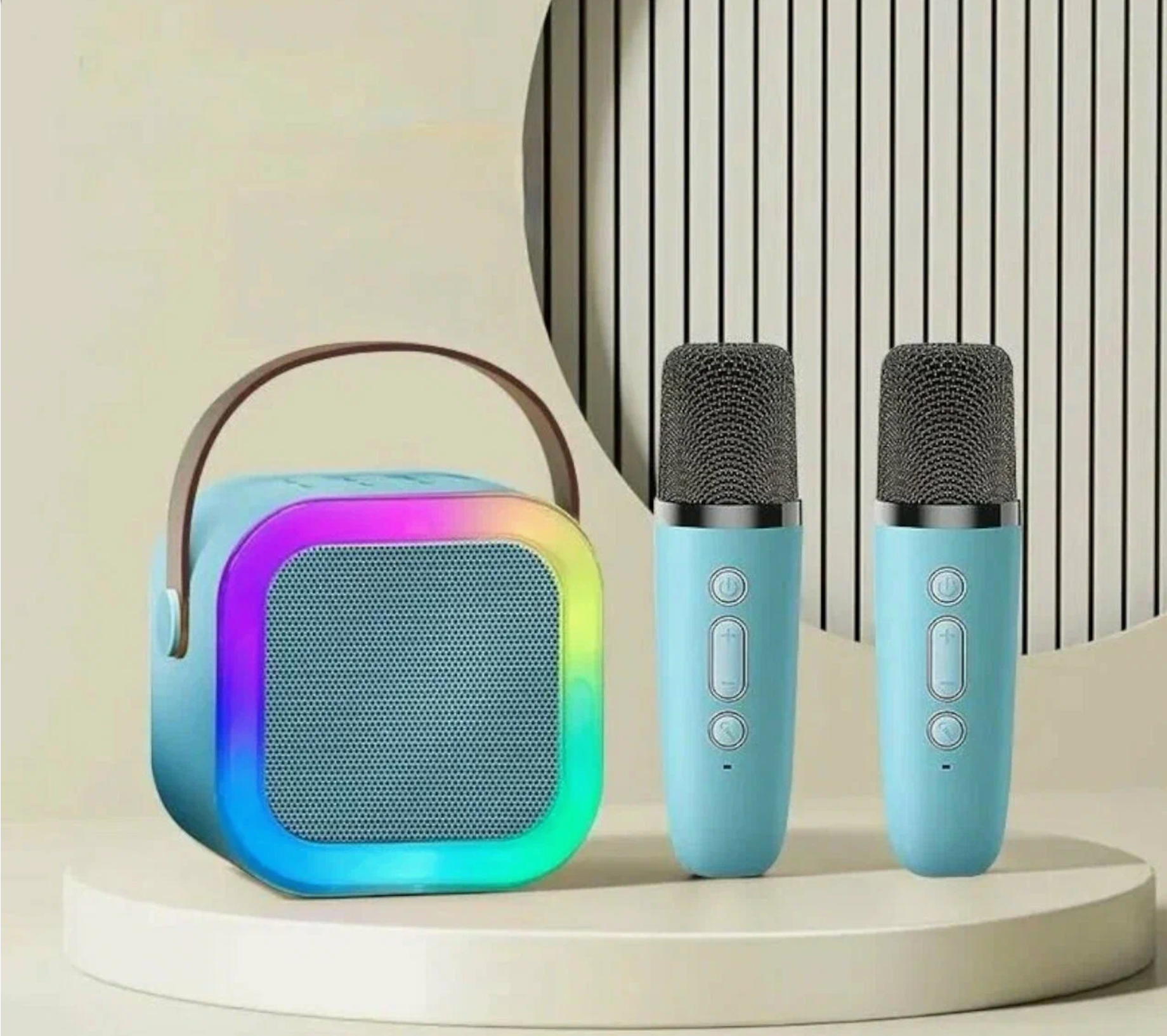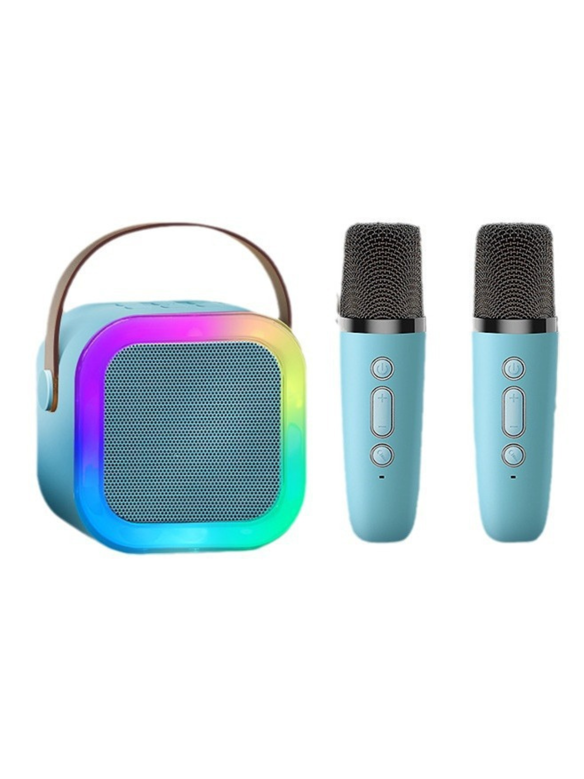 Детская караоке система/Караоке система с двумя беспроводными микрофонами и колонкой (голубой)/(Беспроводной, Живой вокал, Портативная колонка)