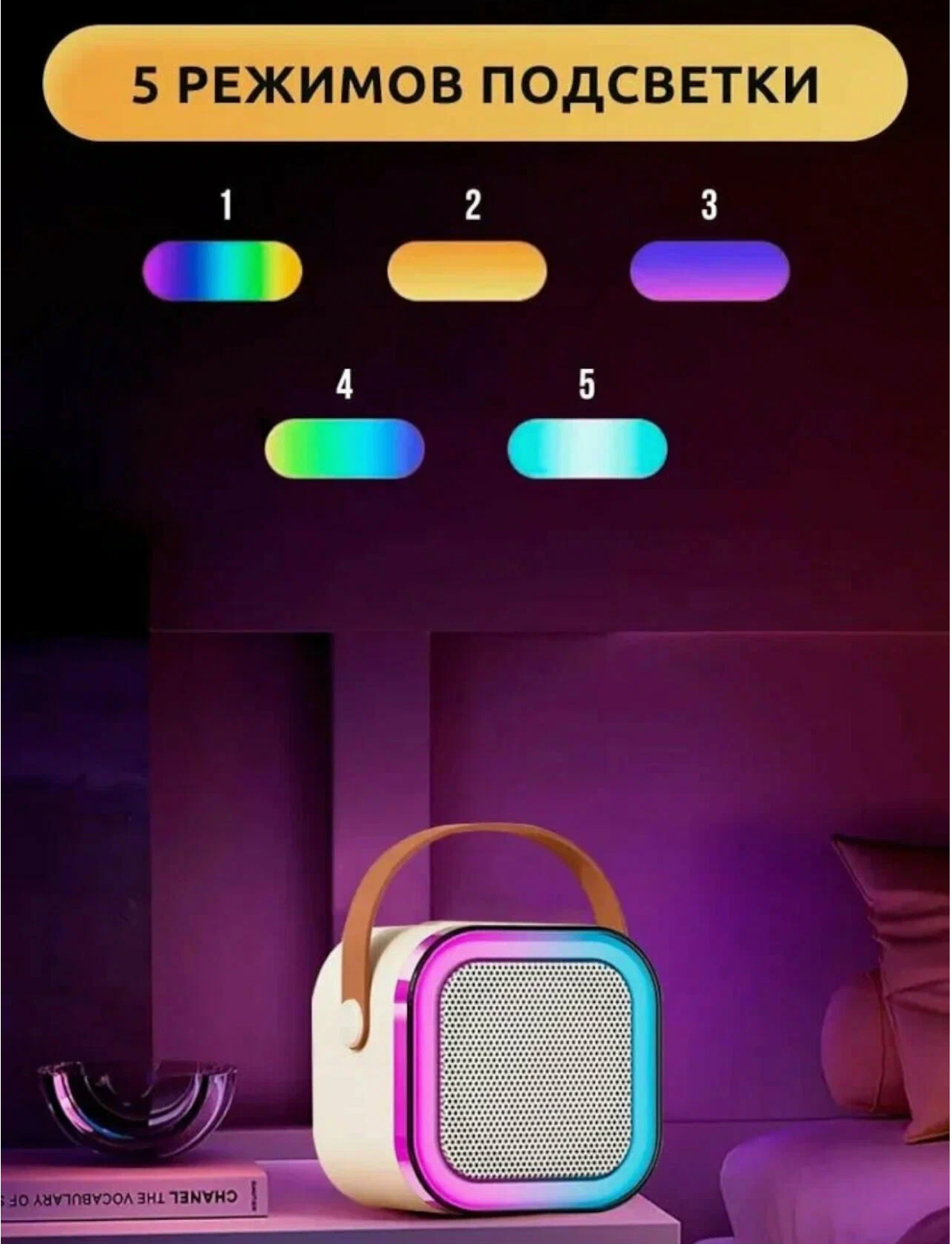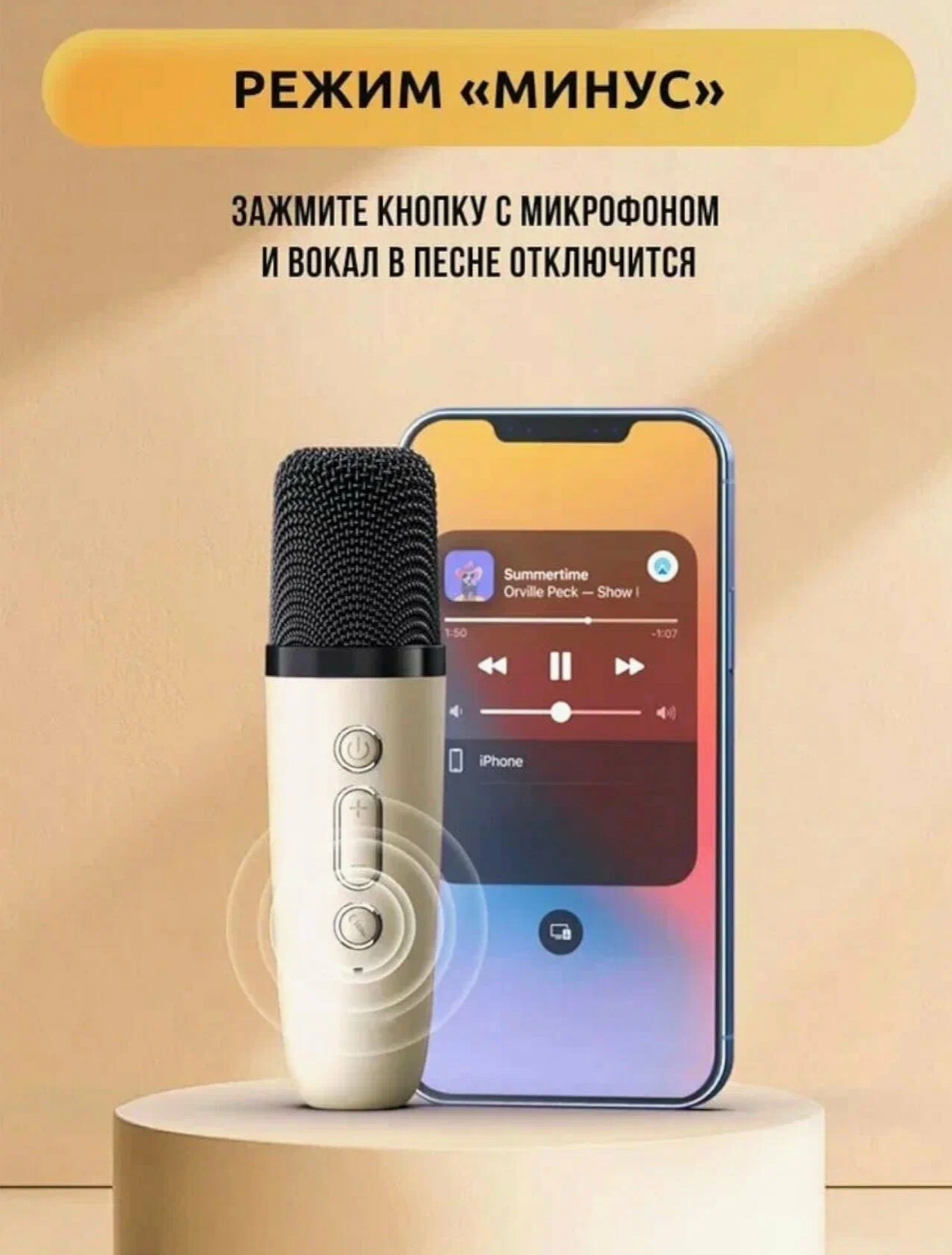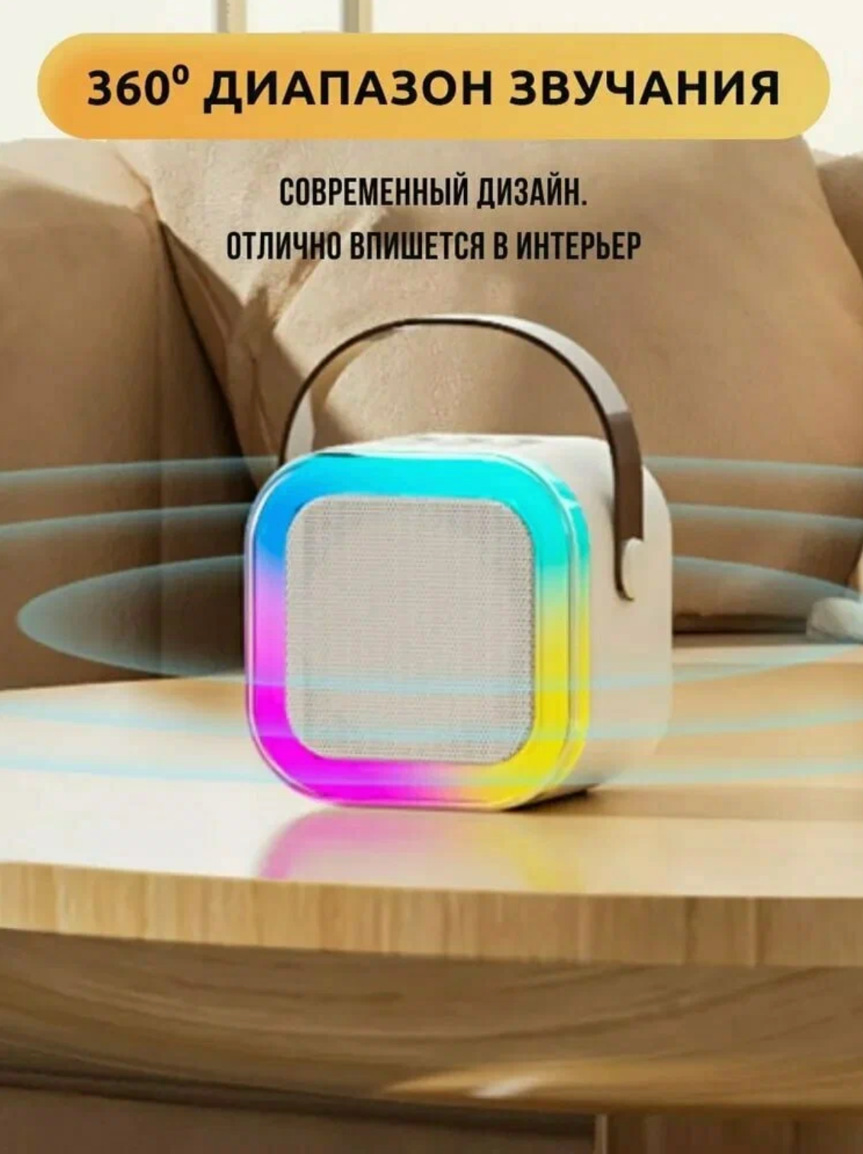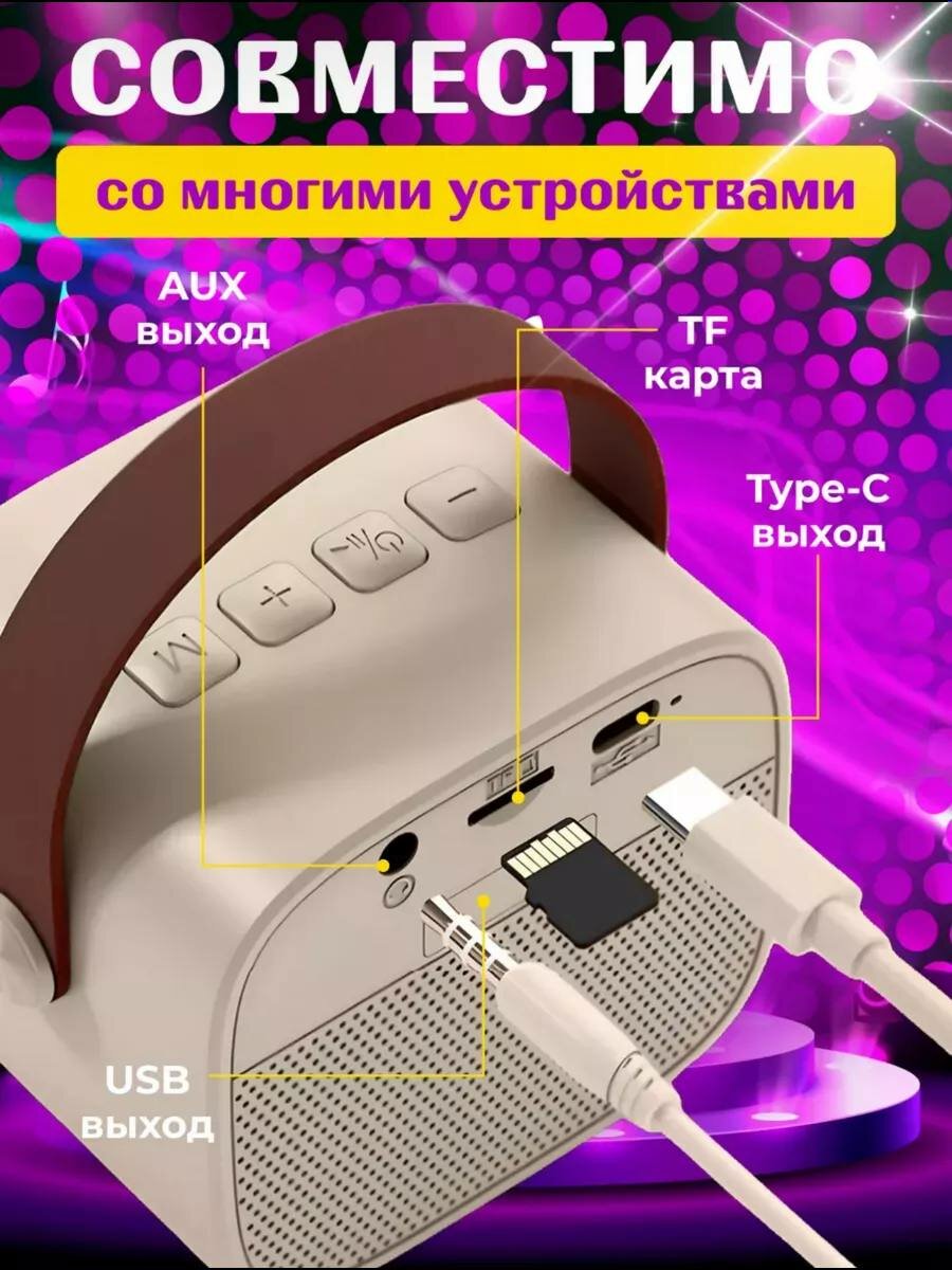 Детская караоке система/Караоке система с одним беспроводным микрофоном и колонкой (бежевый)/(Беспроводной, Живой вокал, Портативная колонка)