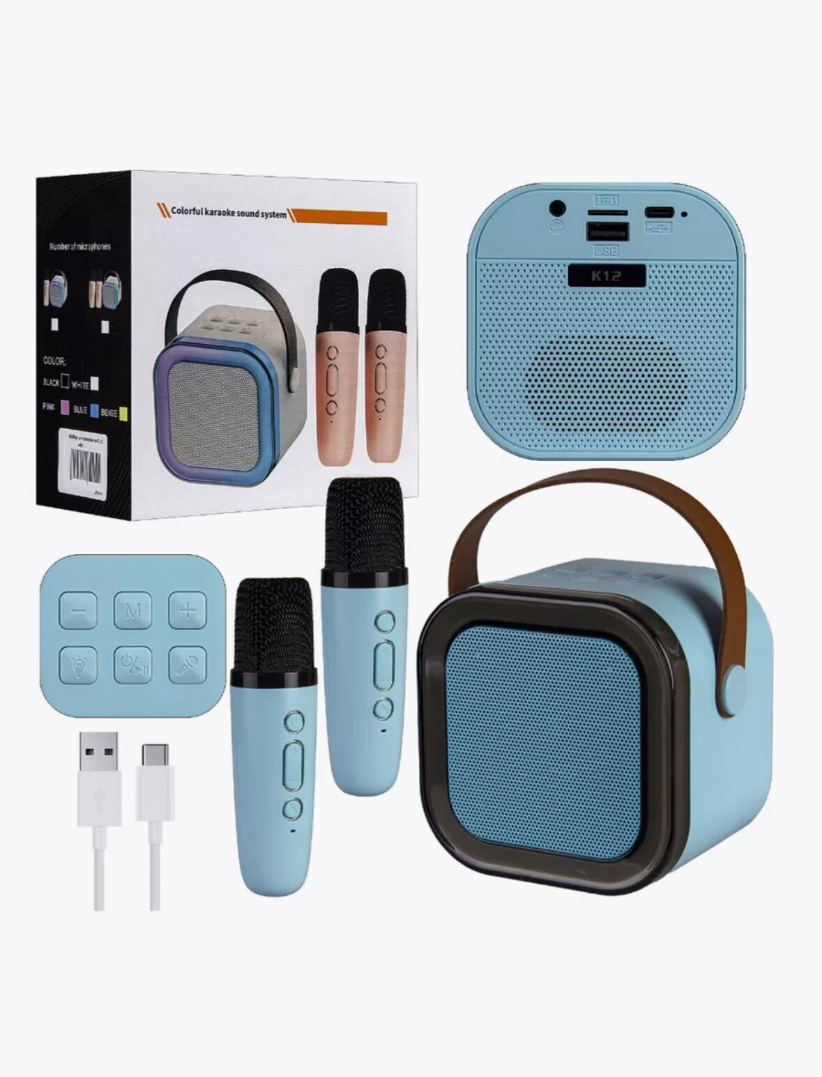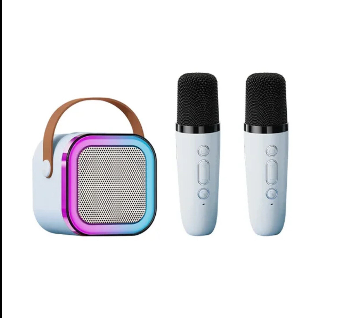Детская караоке система/Караоке система с двумя беспроводными микрофонами и колонкой (синий)/(Беспроводной, Живой вокал, Портативная колонка)