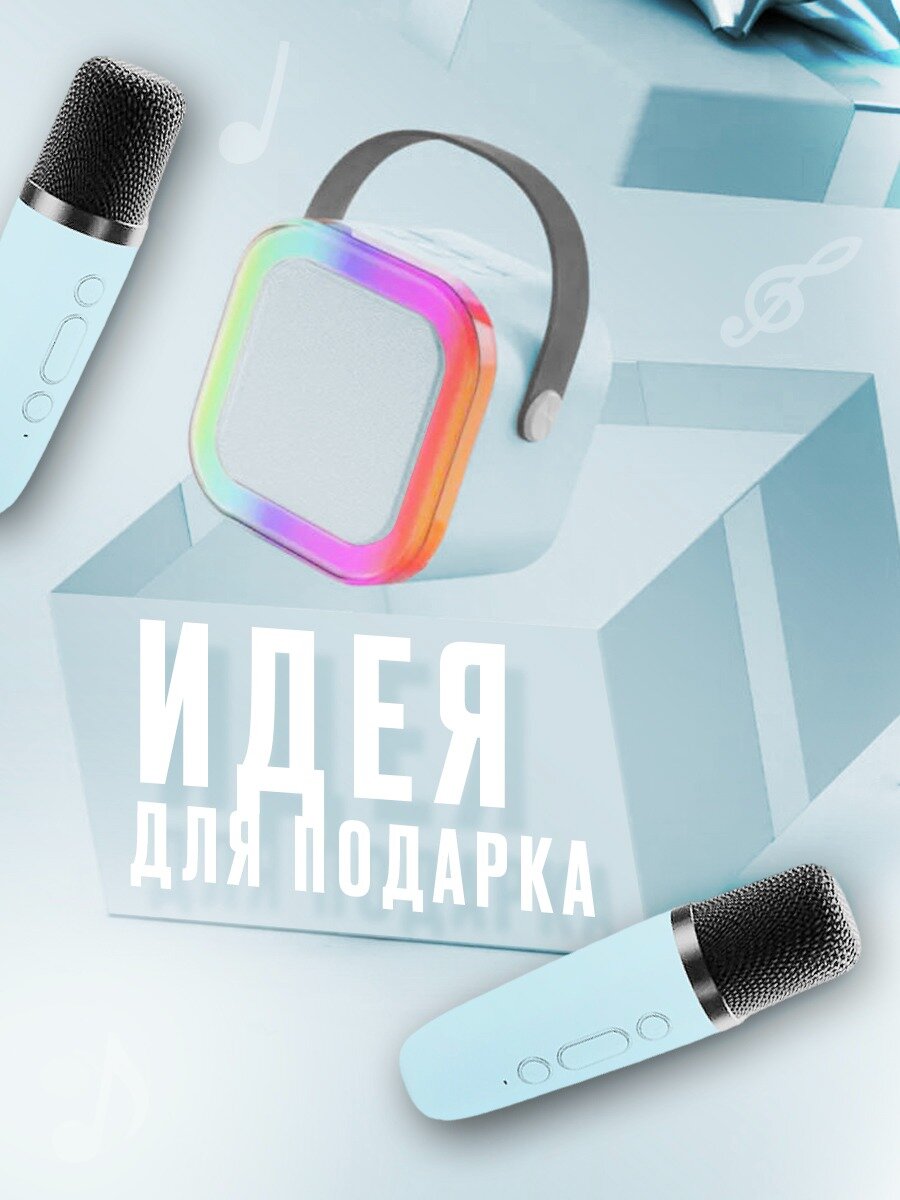 Купить Детская караоке система/Караоке система с двумя беспроводными микрофонами и колонкой (голубой)/(Беспроводной, Живой вокал, Портативная колонка)