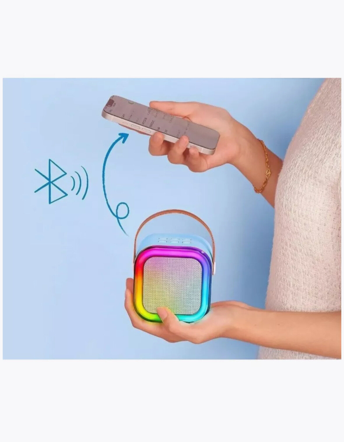 Детская караоке система/Караоке система с одним беспроводным микрофоном и колонкой (голубой)/(Беспроводной, Живой вокал, Портативная колонка)