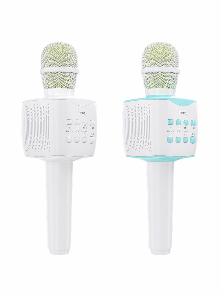 Микрофон вокальный беспроводной Bluetooth, Hoco BK5 Cantando, microSD караоке-плеер - бело-голубой