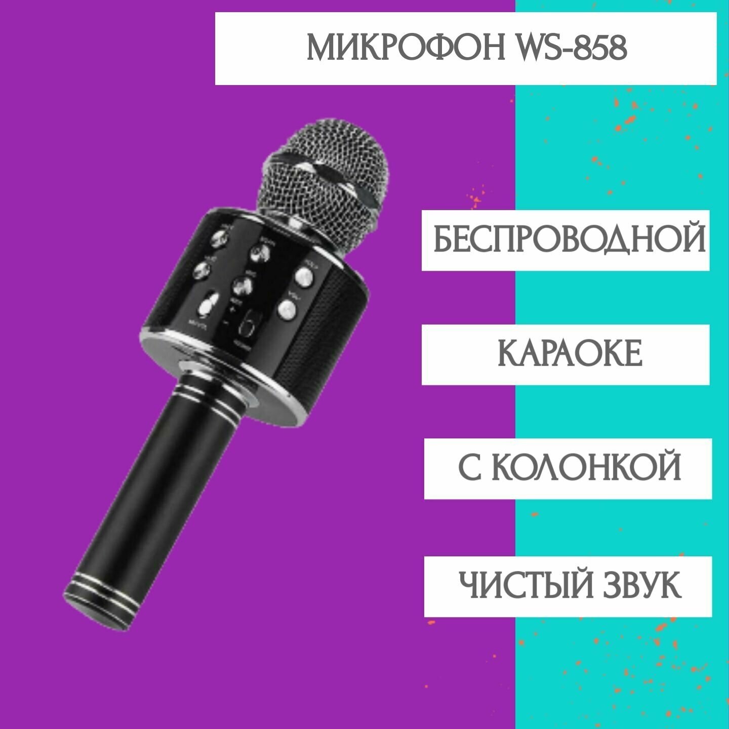 Купить Беспроводной караоке-микрофон WS-858, черный