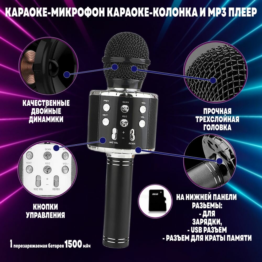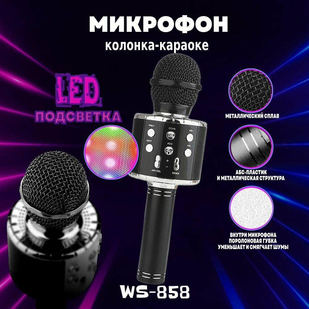 Беспроводной караоке-микрофон WS-858, черный интересное: