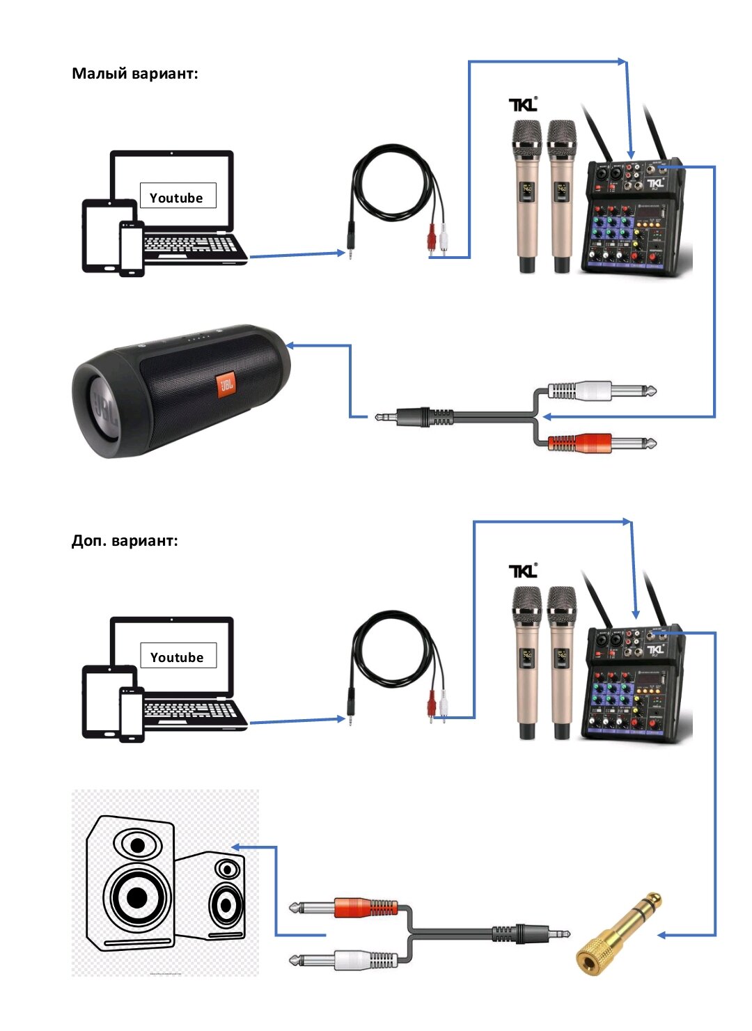 Готовый комплект для домашнего караоке. TKL - микшер с эффектами и Bluetooth, беспроводные микрофоны, коммутация. 9в1.