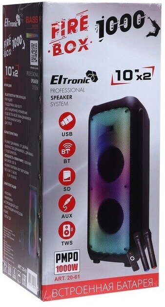 Портативная акустика Eltronic 10" 20-61 Fire Box 1000 100 Вт, Aux, Usb, BT, 7000 мАч .