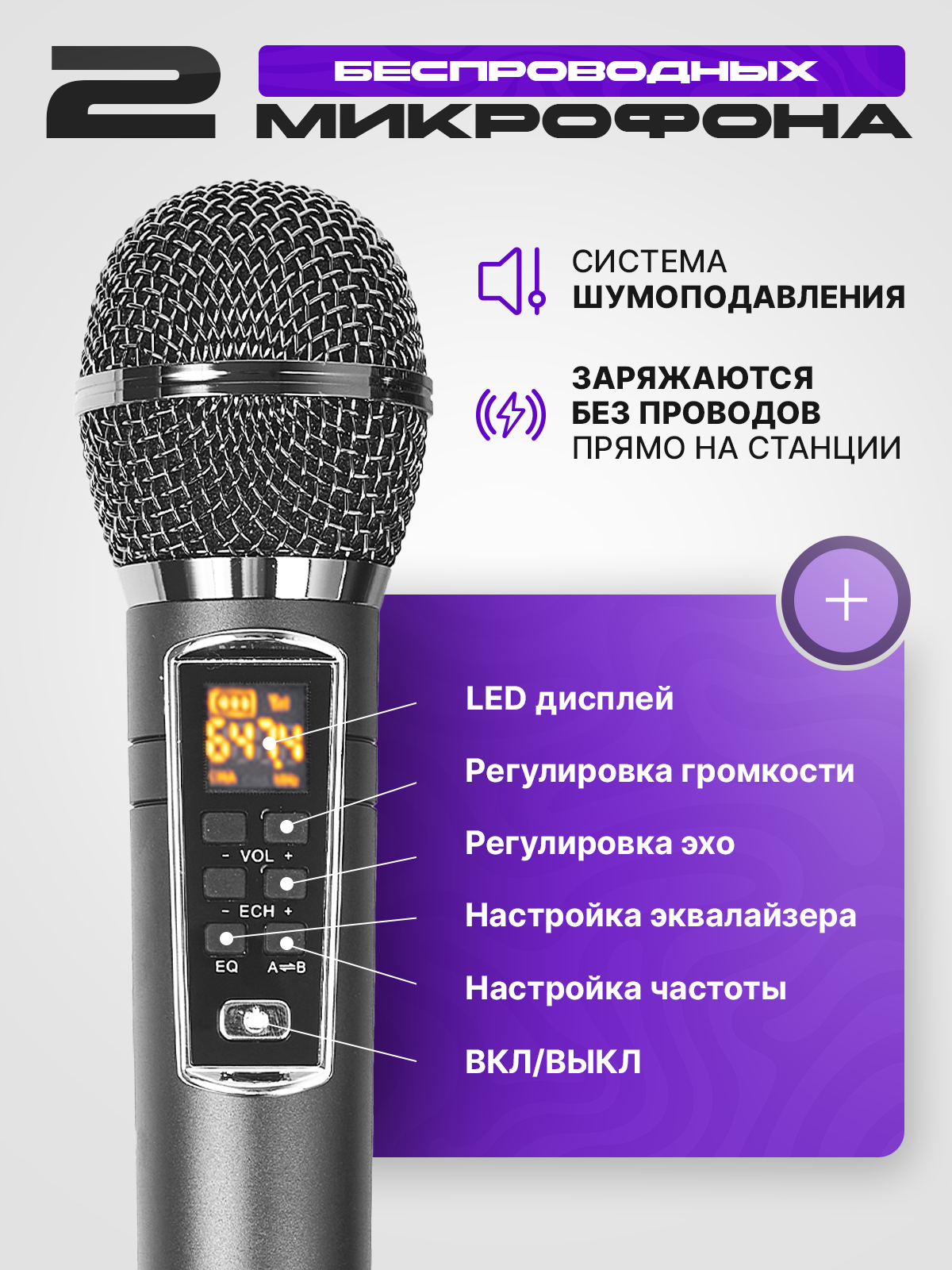 СохранитьКараоке система с двумя беспроводными микрофонами "SD-306 PLUS" графит интересное: