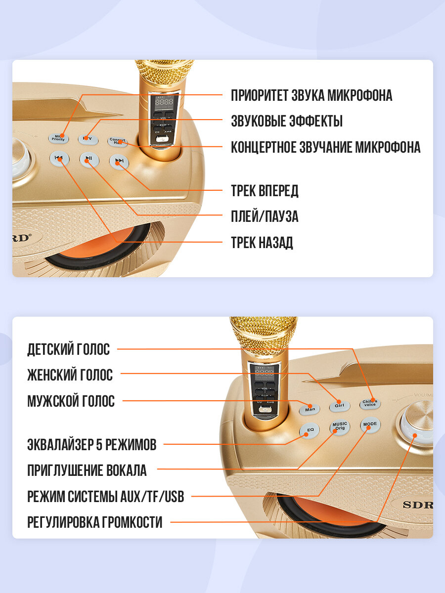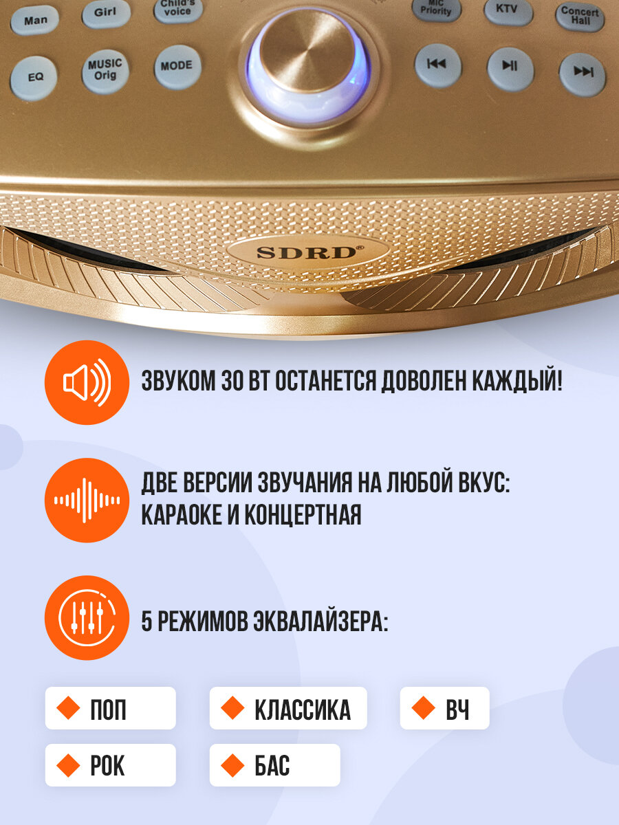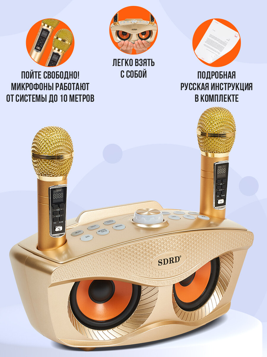 Купить Караоке система с двумя беспроводными микрофонами "SD-306 PLUS" золотая