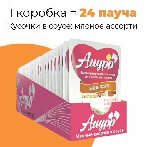 Купить Амурр Паучи для кошек кусочки мяса в соусе со вкусом мясного ассорти 100г 24шт