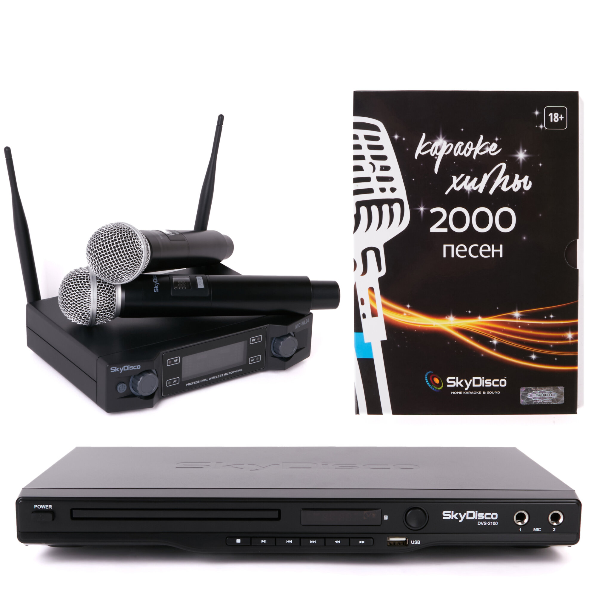 Купить Комплект караоке для дома SkyDisco Karaoke Home Set: приставка с баллами, микрофоны, диск 2000 песен