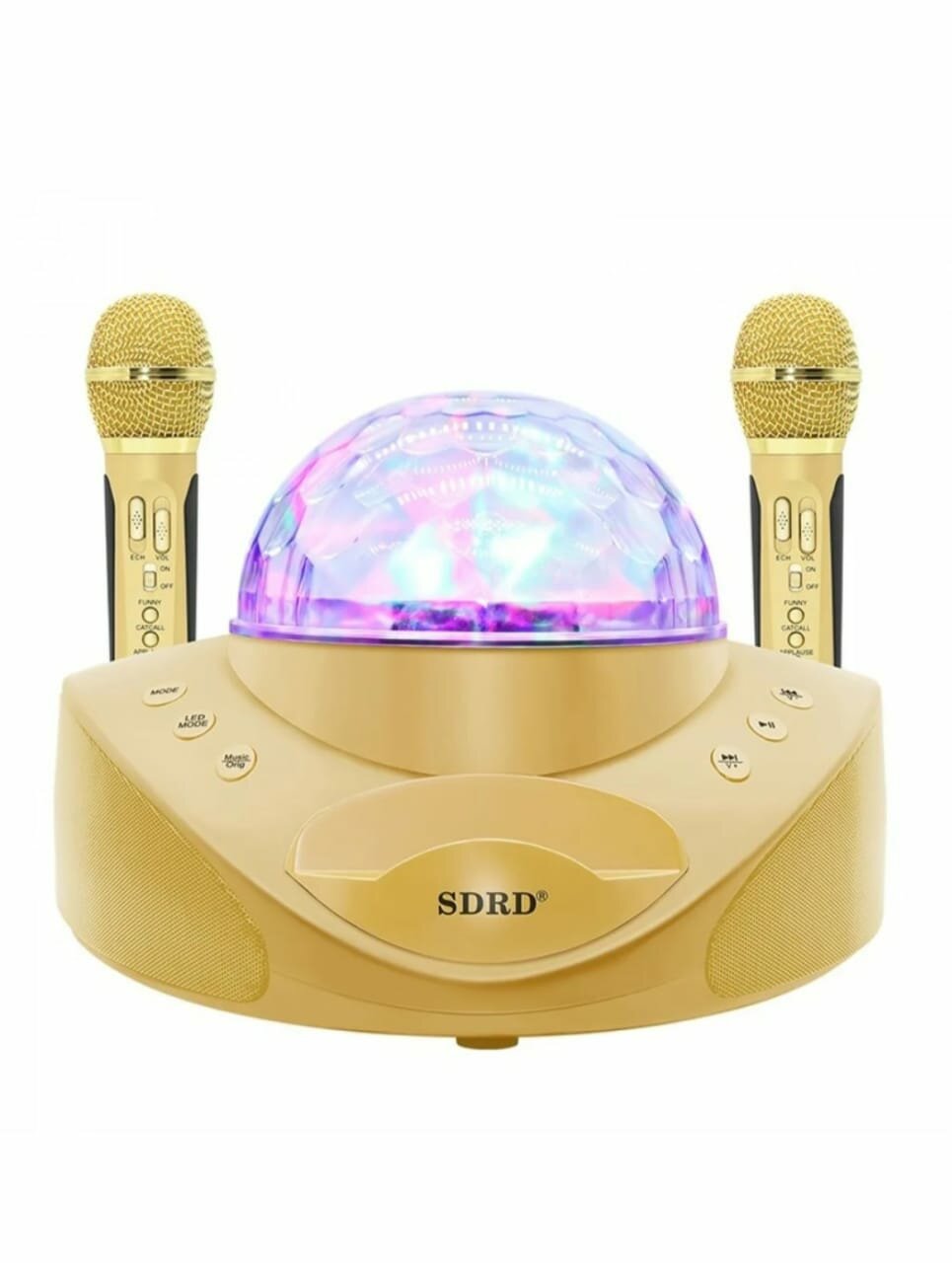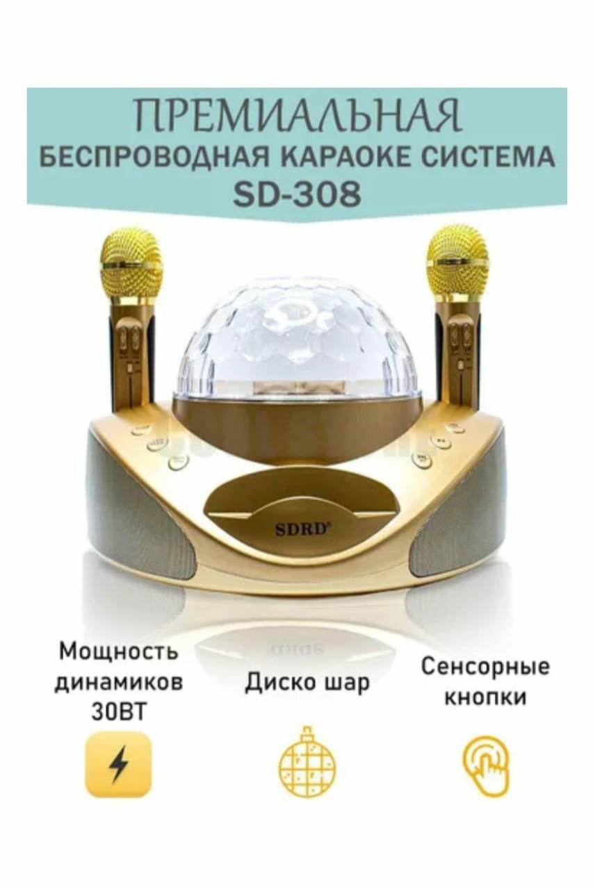 Купить Караоке система беспроводная с Диско Шаром и двумя микрофонами SD-308 золото