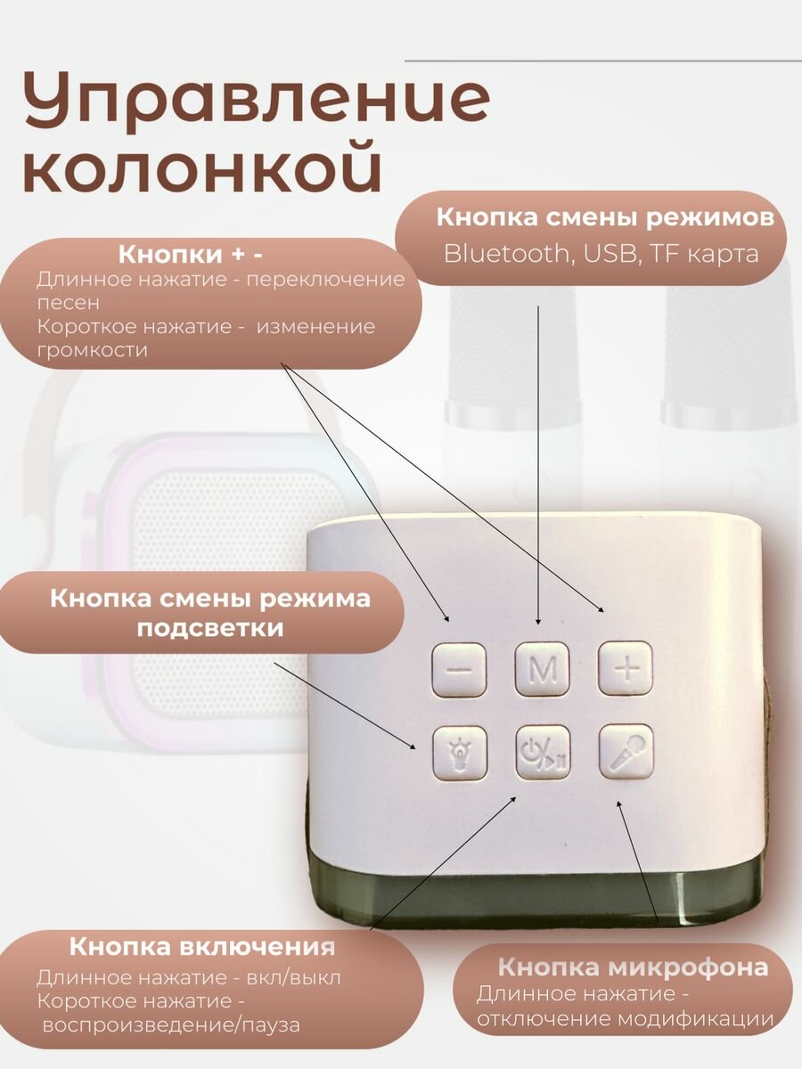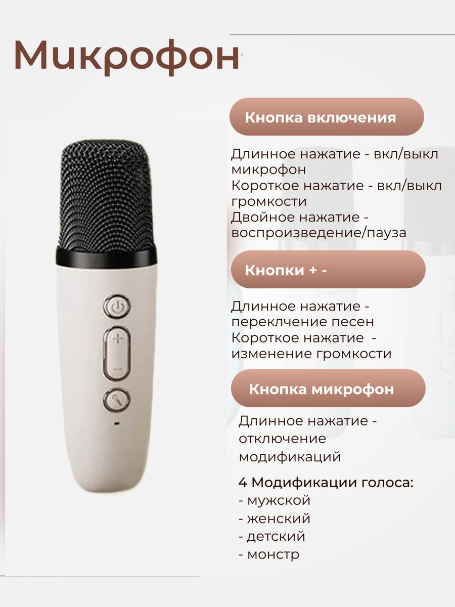 Детская караоке система / Беспроводной, Живой вокал, Портативная колонка / бежевый