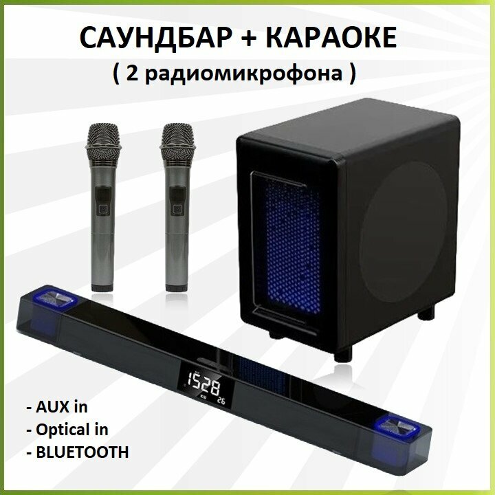 Купить K-88 - Звуковая панель, саундбар, динамичная LED подсветка, караоке, 2 радиомикрофона, Bluetooth 5.0