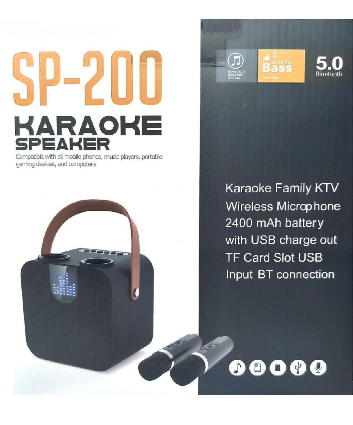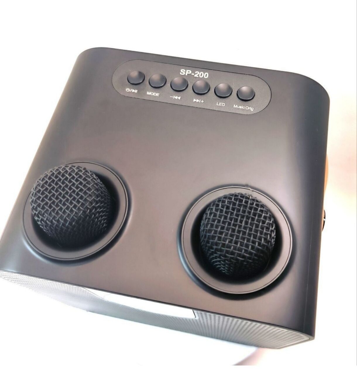 SP-200 караоке система с двумя микрофонами, управление с микрофона, 15 W. смена тембра и улучшение голоса, подключается к смартфону и телевизору интересное: