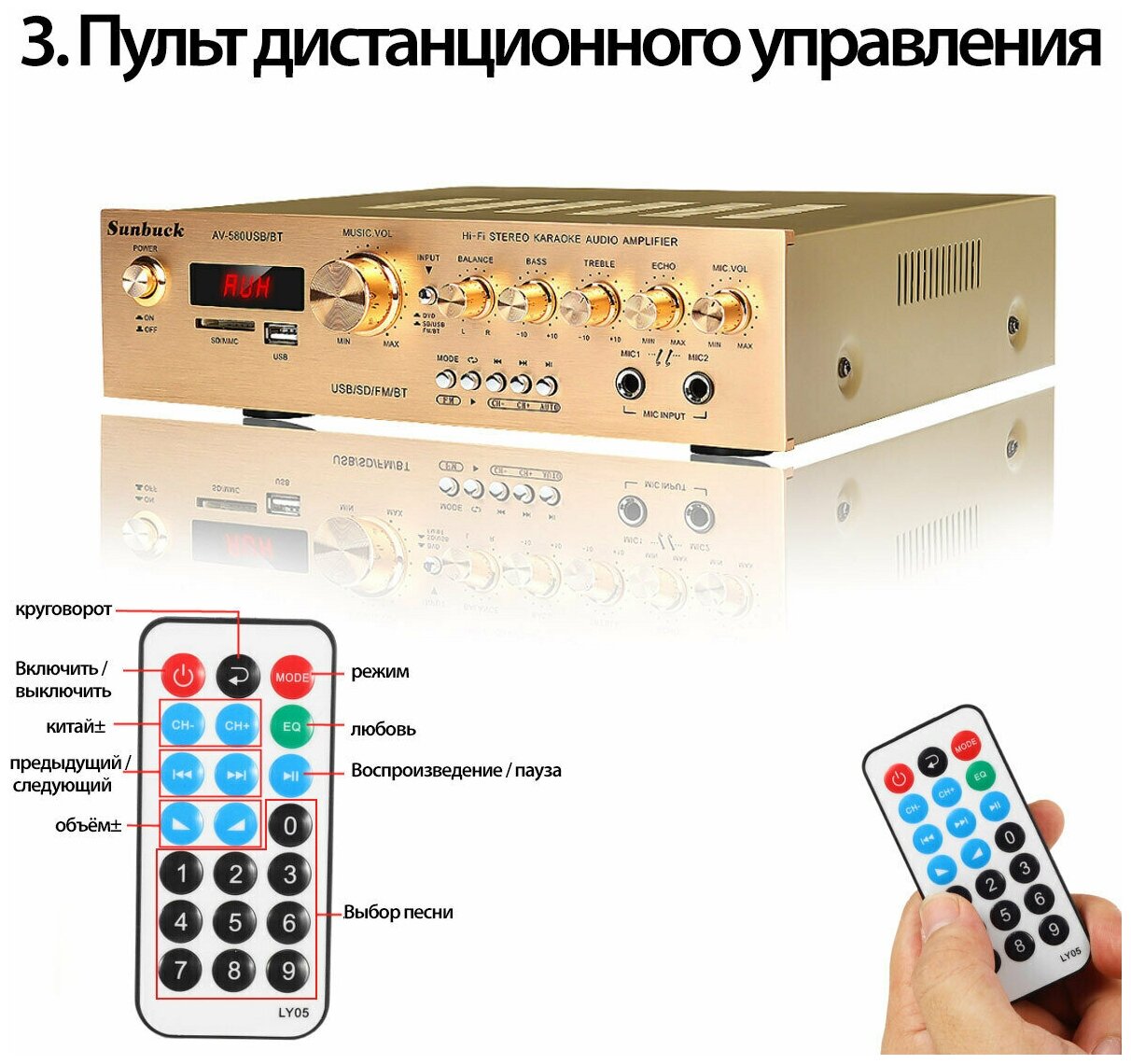 Караоке система 5-ти канальный HI-FI усилитель Sunbuck PROever 580USB 1200 Вт интересное: