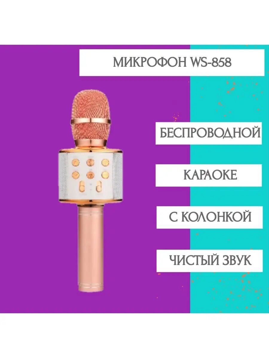 Беспроводной караоке микрофон WS-858 розово-золотистый интересное: